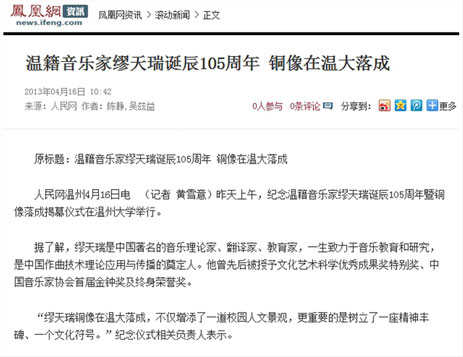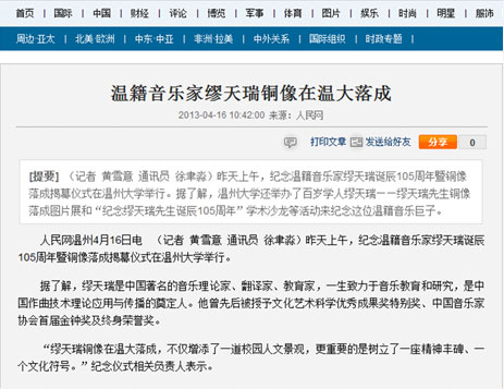 北校区音乐楼一楼大厅开展为期一个月的"百岁学人缪天瑞——缪天瑞先生铜像落成图片展"。本图片展共展出了先生一生中珍贵照片100多张,这些照片涵盖了先生的丰富经历和学术生涯,这些图片尤为珍贵。