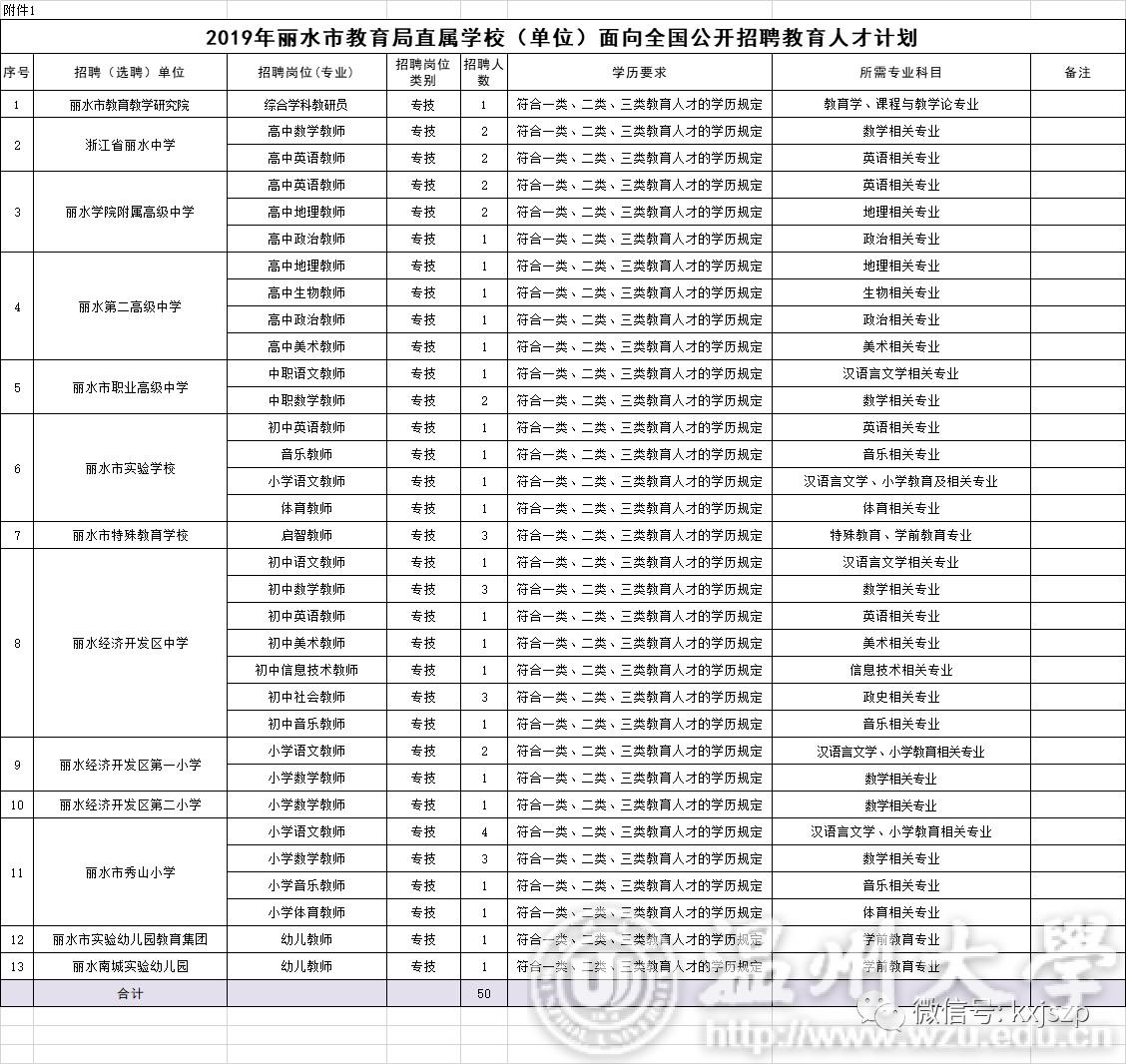 附件:1. 2019年丽水市教育局直属学校(单位)面向全国公开招聘教育人才计划