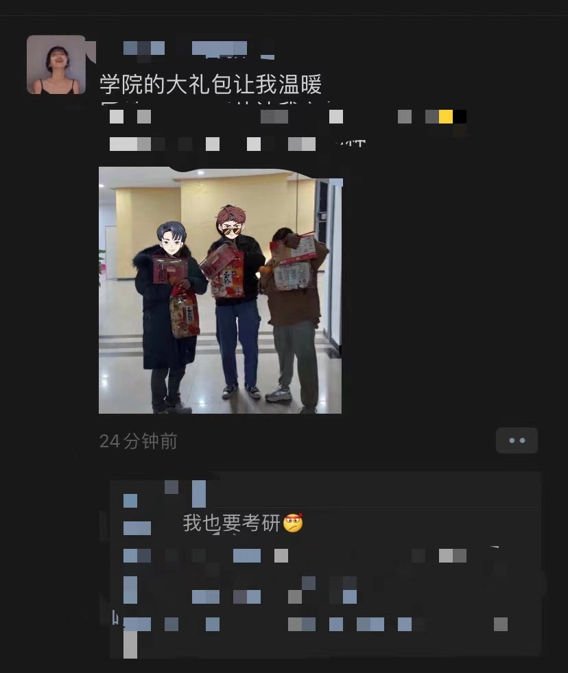 “考研加油包”成为了冬日里的一道温暖的风景线,收到礼物的同学个个都高兴极了,既惊喜又感动,纷纷表示“太贴心了"!