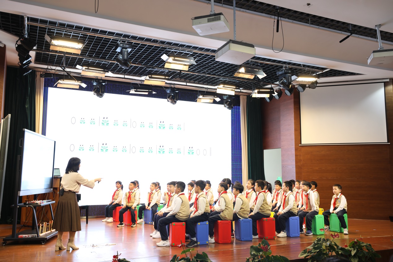 上午最后一节课由金冰洁老师率领四年(1)班同学带来《癞蛤蟆和小青蛙》。这节课打破传统的上课形式,学生跟着音乐走动变换队形,模仿癞蛤蟆和青蛙的形态并以此为基础展开课程的主题。