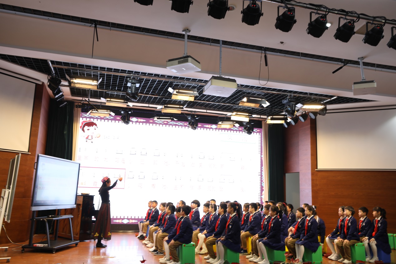 3月30日上午第一节课由张梦雅老师主讲,她和三年(2)班的同学们一起呈现《小巴郎,童年的太阳》。老师采取听辨方式,听辨三段少数民族的歌曲简单快速的导入主题。接着通过敲打节拍、乐器伴奏、游戏互动、歌舞结合等形式很好的解决了本节课的重难点。在课堂的最后,老师结合实时国家热点“支持新疆棉花”,将整堂课进行了升华,给学生传播积极向上的思想。