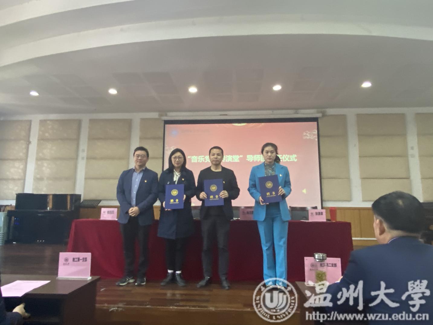 随后,举行“音乐党课讲演堂”导师团聘任仪式和项目授旗仪式。首批受聘的“音乐党课讲演堂”导师团由学院领导和学院教工支部书记担任,这也表示学院党委希望在接下来学院全体党员干部的共同努力下“音乐党课讲演堂”项目能够取得长足的发展。接下来,“音乐党课讲演堂”和“红色展演大舞台”两个项目将组成“鸿音传承党员先锋服务团”的两大支柱力量,为全校及社会传播红色文化教育正能量。