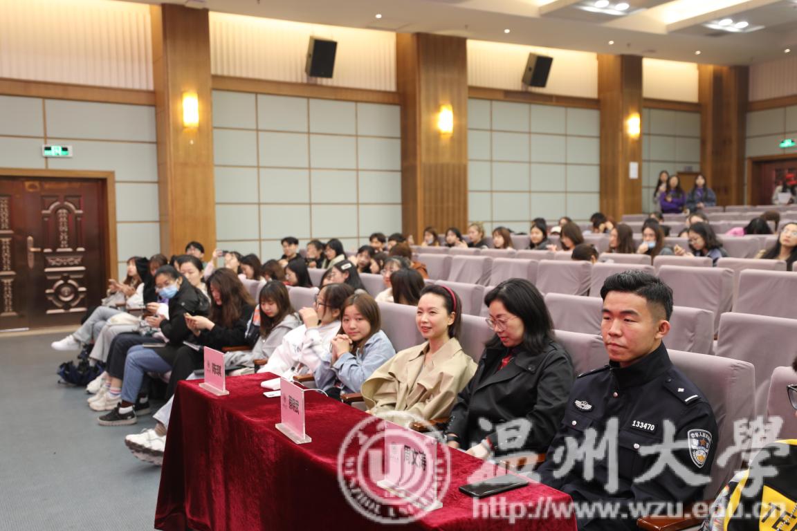 接下来进入到活动的第二部分,由茶山派出所周文涛警官为我们讲解反诈防诈安全教育宣讲。周警官为大家分享了多起发生在我们身边的真实案例,并罗列了温州几所高校受到诈骗的数据,在场同学认真观看。周警官指出,高校的受诈骗占比非常之大,这不得不让我们在耳边敲响警钟。另外,周警官还介绍了几个常见的诈骗方式,其中包括电话诈骗、校园贷、假冒公检法诈骗、考试诈骗、裸聊诈骗等,希望同学们可以擦亮眼睛,谨防陷入骗子的圈套。活动最后,周警官强调“套路千万条,防诈是一条,天上不会掉馅饼,守牢钱财最要紧”,望大家引以为戒。