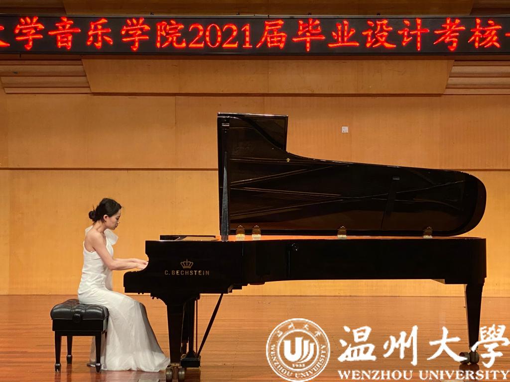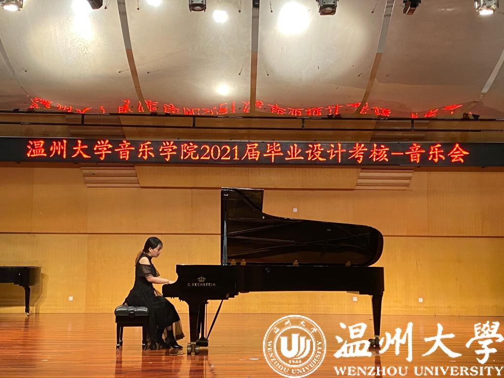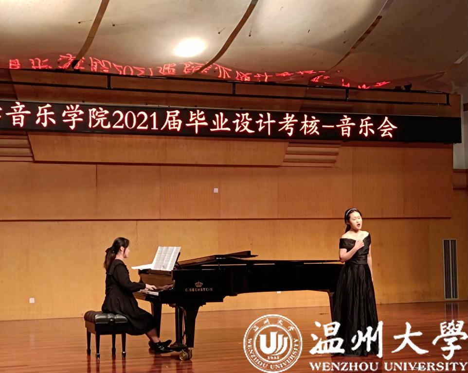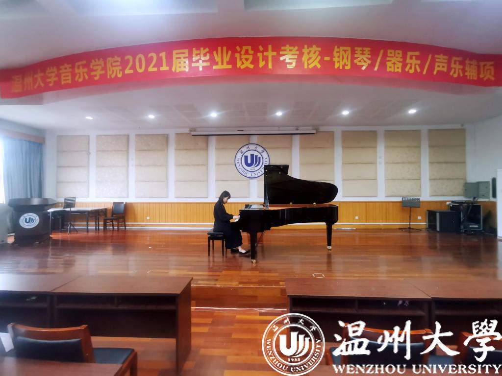 首先进行的是钢琴主项考,天瑞音乐厅内《门德尔松随想回旋曲》流畅的钢琴旋律拉开了毕业设计考核的帷幕,此曲中包括大量的浪漫主义元素,形式虽严谨,但风格自由而独立,表达出了自然情怀和对生活的赞赏。其次,器乐主项考和钢琴辅项考等同时进行,器乐主项考《苍歌引》将对春天的热爱抒发得淋漓尽致,同时也变现了作者对生活的积极赞美之情。钢琴辅项考场内《帕萨卡利亚(Passagalia)》、《a小调圆舞曲》《贝多芬奏鸣曲》等不同风格不同技巧的钢琴曲被同学们认真的演绎着;下午自弹自唱考、声乐主项考、论文答辩同时进行,自弹自唱试场同学们边弹边唱《送别》、《明天会更好》、《小白船》等曲目。声乐主项考亦如火如荼进行,一首《我和我的祖国》采用抒情和激情相结合的笔调,将优美动人的旋律与朴实真挚的情感结合起来,表达了人们对祖国的忠心依恋和真挚歌颂。论文主项答辩3个试场的同学们表现也可圈可点。毕业设计考核很好的展示了同学们本科阶段的学习成果。