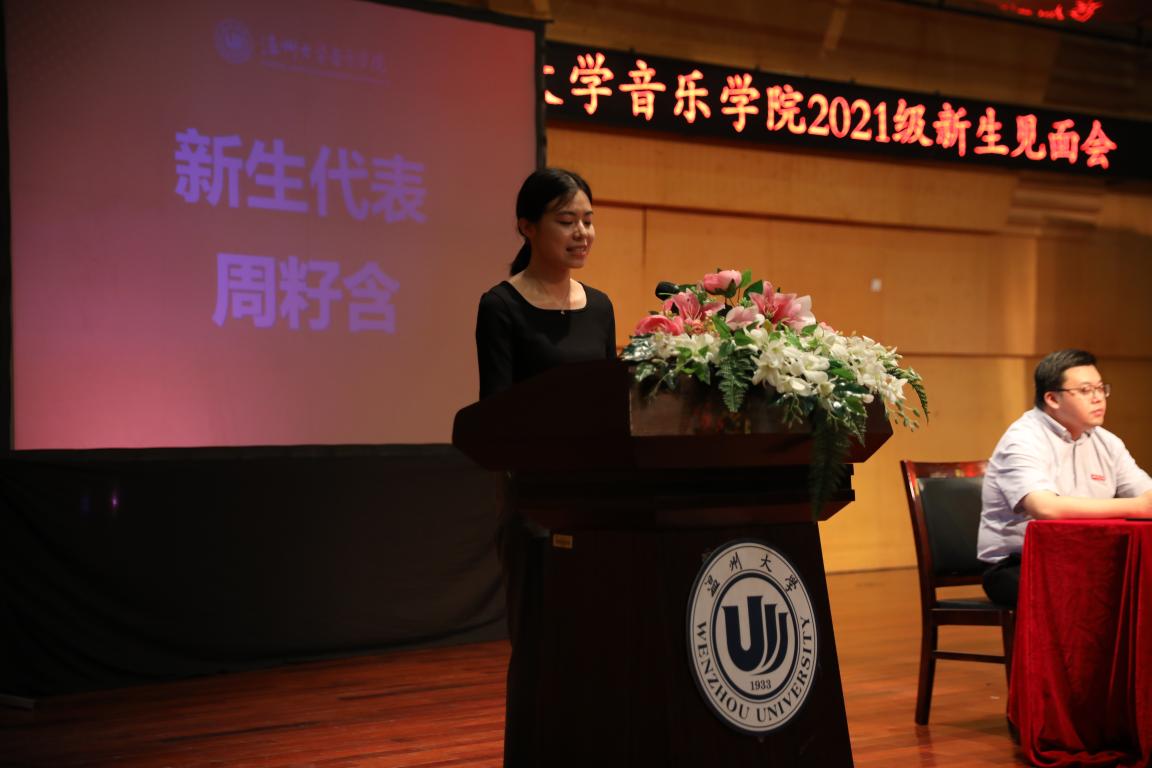 老生代表金可怡、本科新生代表周娴、研究生新生代表周籽含同学相继发言,他们都表示要脚踏实地,夯实基础,还要有自己的学习目标。不仅如此,还要有一个良好的心态,通过自律来完善自己的大学生活。研究生新生代表周籽含在发言时讲到,我们要涵养才华,练就本领。研究生阶段要对自己有更高的要求,树立明确的专业目标。