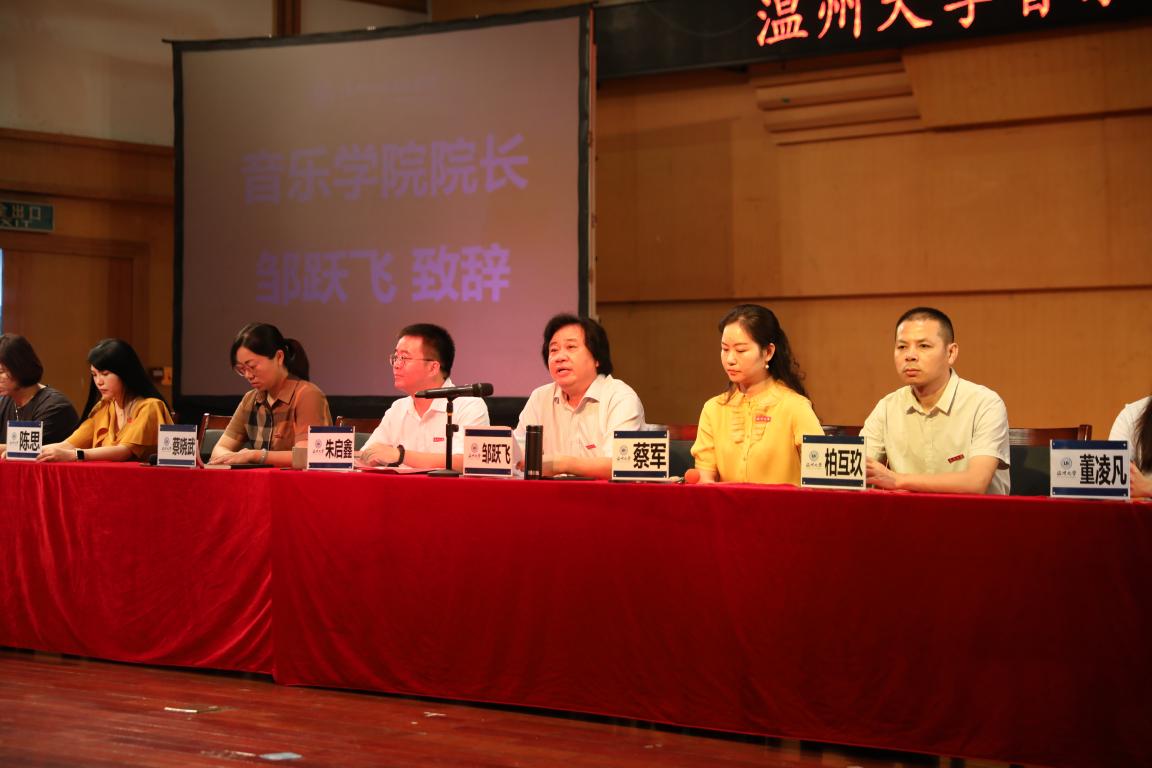 会议第一项,全体起立奏唱国歌。随后院长邹跃飞致辞。他提出三点要求。第一,夯实专业基础。邹院长希望新生们能够充分利用起学院的优秀师资和设备资源来完善提升自我;第二,注重艺术实践。我们身处于多远开放的时代,因此,作为新时代的音乐人,应当重视音乐理论和音乐实践,将理论知识内化整合,融会贯通;第三,肩负时代使命。中国特色社会主义已经进入新时代,我们要紧跟时代步伐,胸怀中华民族伟大复新的梦想,携带“求学问是,敢为人先”的校训精神,砥砺前行,不断进步。