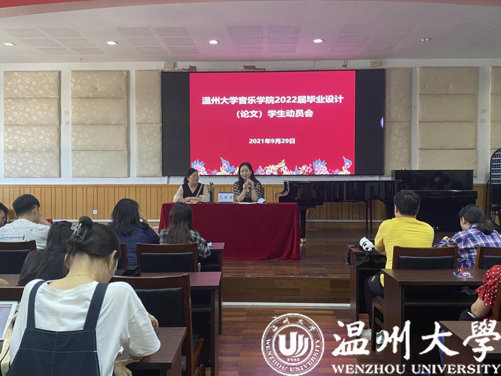 音乐学(师范)专业本科毕业设计(论文)考核办法》等文件,人才培养方案、专业特色要求,以及音乐学(师范)专业毕业设计的管理办法、考核办法进行了解读,之后,教学科科长成晓老师就2022届毕业设计选题的形式、毕业设计工作流程和时间安排、毕业设计各环节注意事项等向毕业生们做了介绍。