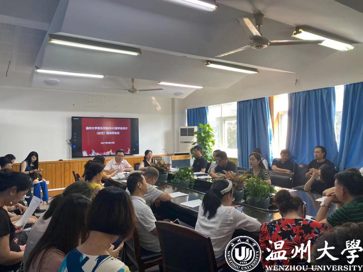 在音乐楼203会议室召开2022届本科毕业设计(论文)指导老师会议。2022届本科毕业设计(论文)指导师们、教学科成晓老师等参加了此次会议,会议由教学副院长蔡军老师主持。