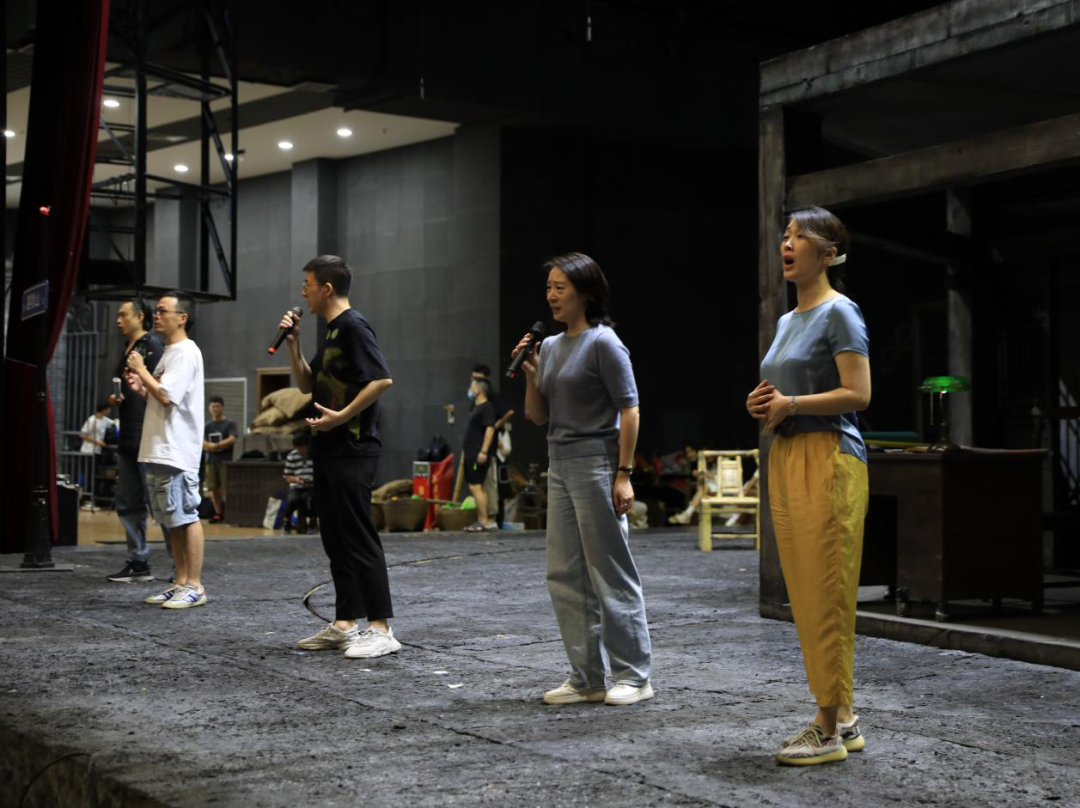 参演师生驻扎育英大礼堂,紧锣密鼓地排练节目,导演王湖泉教授现场坐阵指挥,力求以最好的状态展现温大风采。主演、群演、乐队通力合作,一遍又一遍地排练,揣摩人物心理和唱词动作调度。据了解,此次参加中国歌剧节时间紧、任务重,为了剧目更完美的呈现,剧组演职人员都在进行高强度地排练,哪怕是国庆假期,大家也都坚守在自己的工作岗位上为歌剧节全力以赴。大四的蓝展仪同学已是第三次参演《五星红旗》,“虽然正处于考编的关键时期,但收到通知后,我和室友毫不犹豫地就来了。这是一次非常难得的机会,演好《五星红旗》,弘扬国旗文化,不仅是我们的光荣更是使命。”蓝展仪说道。