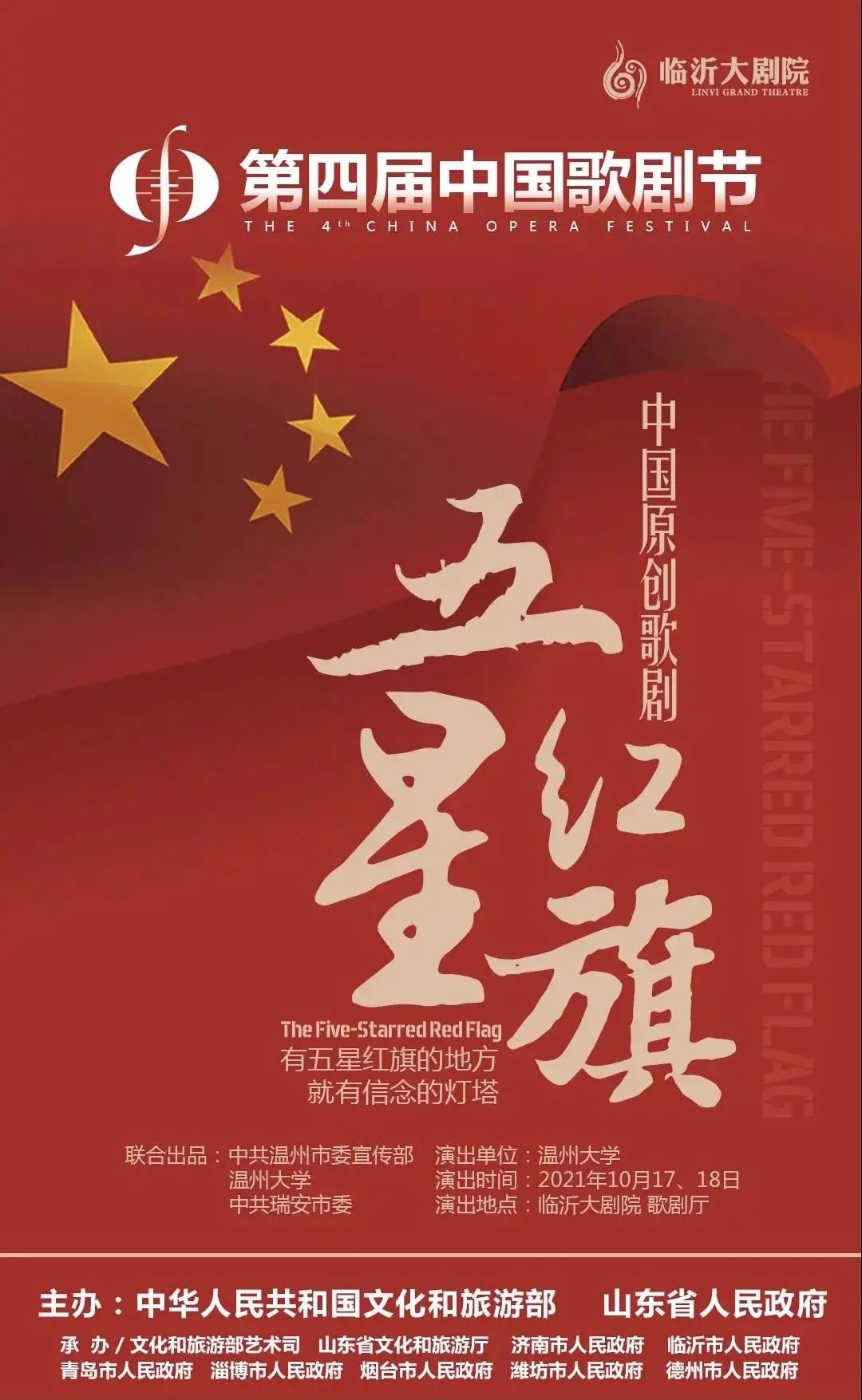 申报的原创歌剧《五星红旗》位列其中,是入围作品中唯一一部由综合性大学出品参演的原创歌剧。10月17日-18日,《五星红旗》将与江苏省演艺集团有限公司出品的《周恩来》和南方歌舞团、广东珠影乐团出品的《红流澎湃》一起在临沂大剧院演出,再次震撼演绎五星红旗背后的故事。