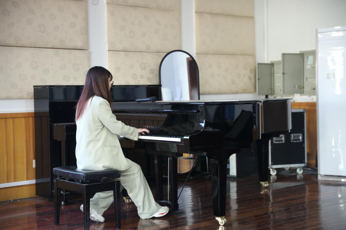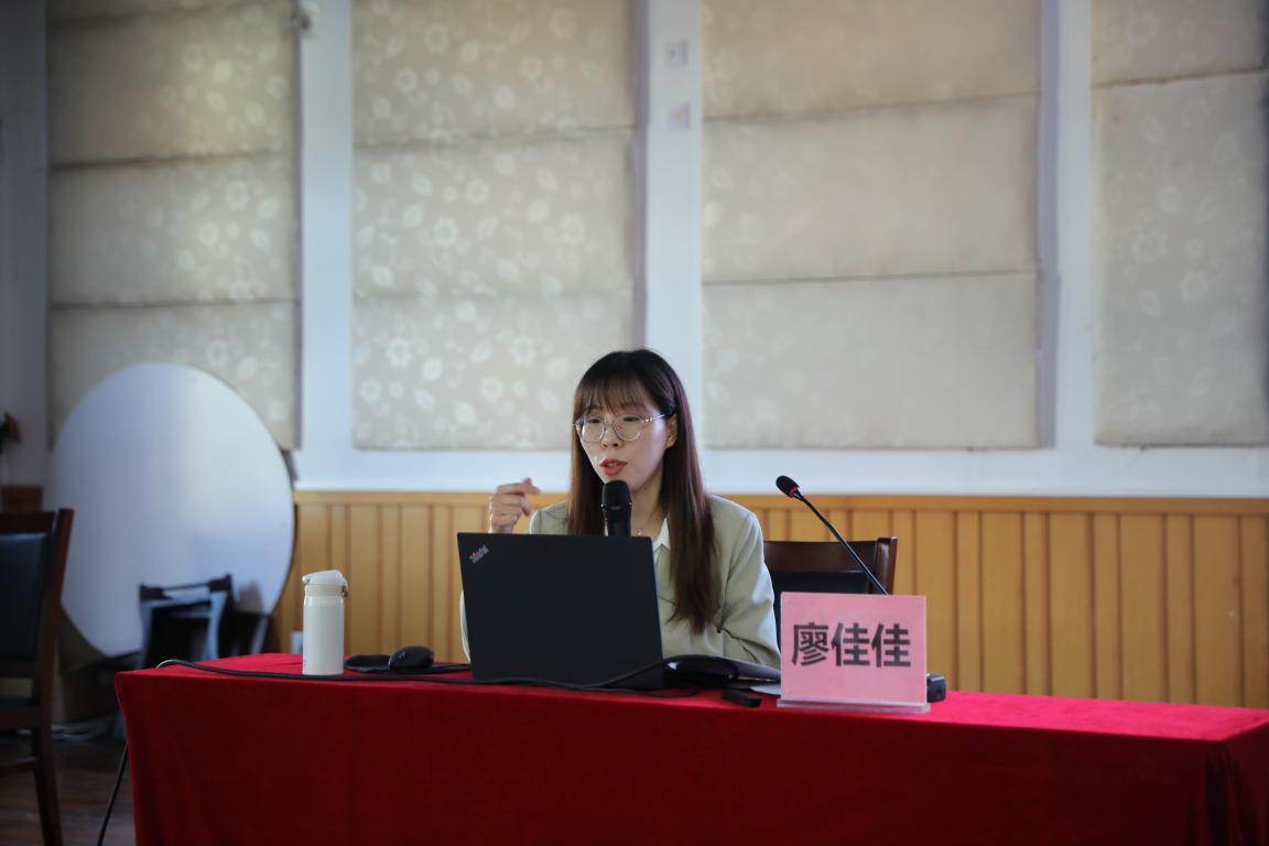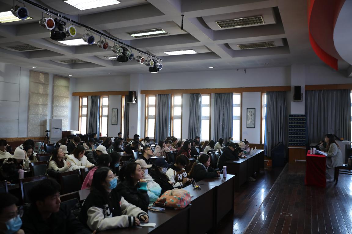 廖老师主要通过介绍她的追梦“三部曲”来向我们讲解本次讲座的主题——《聚点成线,声动百里乐相长》。第一部曲为“追梦合唱梦,研学促成功”。廖佳佳老师提到:机会是留给有准备的人,懂得随机应变,是每一个即将踏入教师行列的人必须具备的能力。廖老师通过观看视频的形式分享从教案例怎样把一节课上出特色。第二部曲为“追寻名师梦 智慧润芬芳”。廖老师指出“既然选择音乐就要干出名堂”,她通过让同学们进行聆听观看示例并且模仿跟学律动,现场的同学们也非常配合,通过这个互动让同学们更直观的感受到这种教学方法的有效性。紧接着,老师用数学中点线面的例子分享了她总结的经验。第三部曲为“声动百里,乐相长”。她认为可以通过一系列的活动,更快了解教师特长,同时促进青年教师自我思考。接着,她提出“基本功引航主旋律”这一观点,教师的基本功对于一个教师来说是最基础且必须要扎实掌握的,只有基本功扎实才能在此基础上发展延伸出更好的课堂教学。最后,廖老师对于专业成长这一方面提出了她的见解,即适路而行,幸福每一步。
