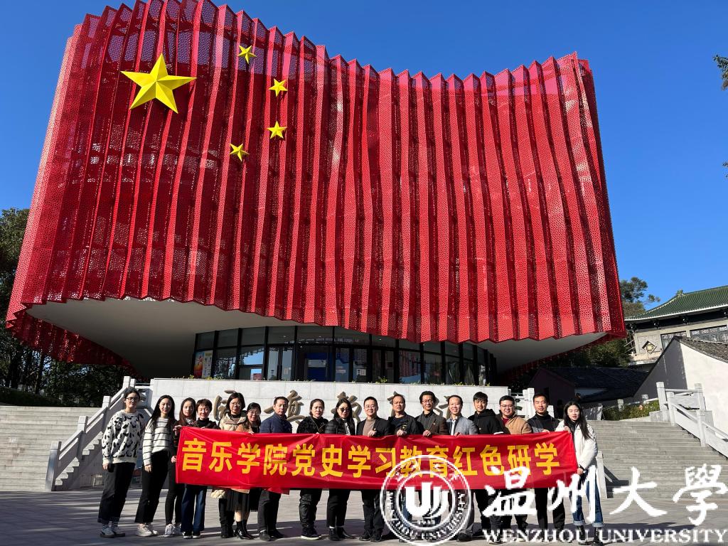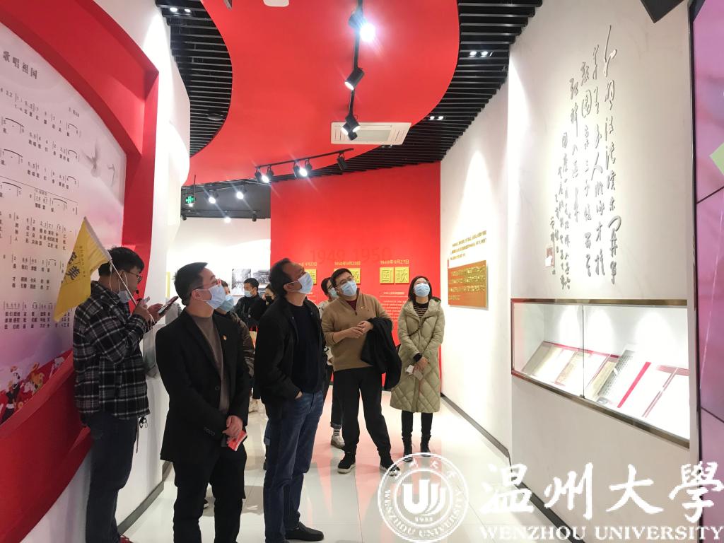 师生党员在学院党委书记朱启鑫的带领下,驱车前往瑞安市国旗教育馆,传承红色初心,弘扬党史文化。