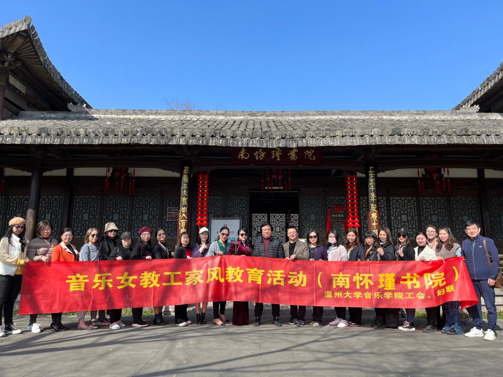 快乐的植物栽种活动结束,女教工们移步走到游船码头开启向往的游船之旅。在游船上大家惬意地吹着暖风,欣赏这片迷人的水乡风情,感受大自然馈赠给我们的这块“城市绿肺”的气息。上岸后女教工们在导游的带领下前往南湖畔南怀瑾书院参观学习,并在这里进行了一场“家风教育”活动。我院党委朱书记希望通过开展这次的主题教育活动,引导全院女教工注重家教,注重家风,以深厚的文化底蕴提升自身修养。最后大家一起在南怀瑾书院门前合影留念,在欢声笑语中结束了今天丰富充实的行程。
