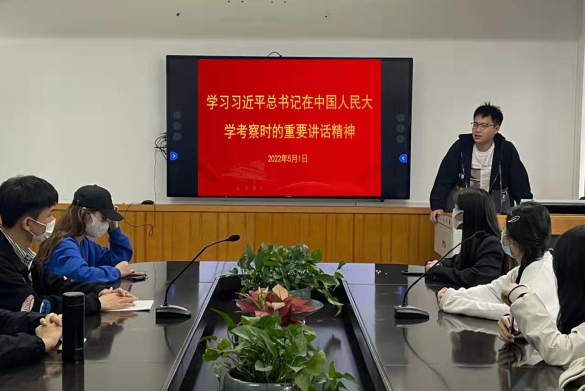 我院于5月1日开展了学习习近平总书记在中国人民大学考察时的重要精神专题学习会。习近平总书记在考察中提到:“希望全国广大青年牢记党的教诲,立志民族复兴,不负韶华,不负时代,不负人民,在青春的赛道上奋力奔跑,争取跑出当代青年的最好成绩!”青年一代有理想、有本领、有担当,国家就有前途,民族就有希望。