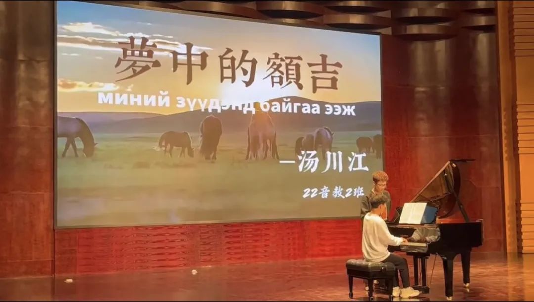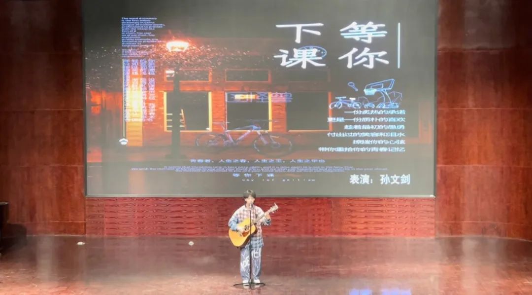 随后,由22级音教1班全体同学带来合唱《装满星星的口袋》,他们通过歌声向观众传达了“愿所有内心的美好都能像星星一样,永远在属于自己的夜空中闪耀”美好愿望。其中由22级音教2班的时尚、金晨璐、谢晓清同学带来的古筝&合唱《年轮》更是将全场节目推向高潮。古风歌曲配上古筝的旋律,颇有一种“大珠小珠落玉盘”的清脆与优雅。萨克斯独奏《打上花火》是带有浪漫色彩的音乐,22级音教2班的陈哲文同学通过演奏将单纯而美好的年少友谊与懵懂清纯的情愫表达的淋漓尽致。在最后,由毒舌电影