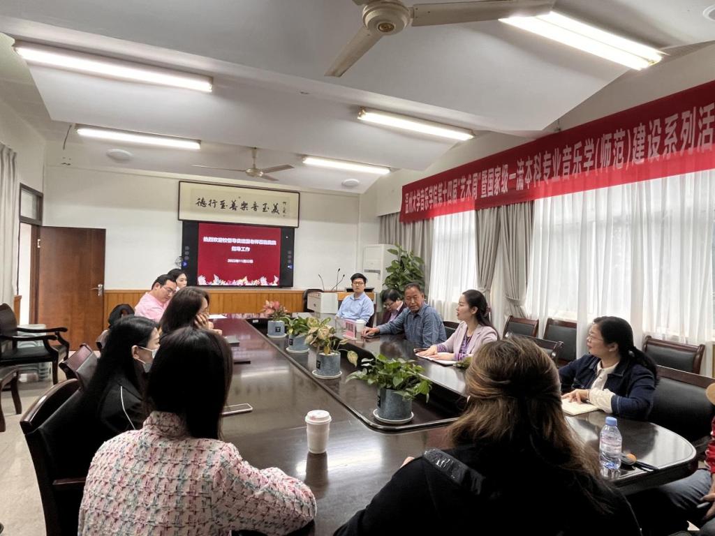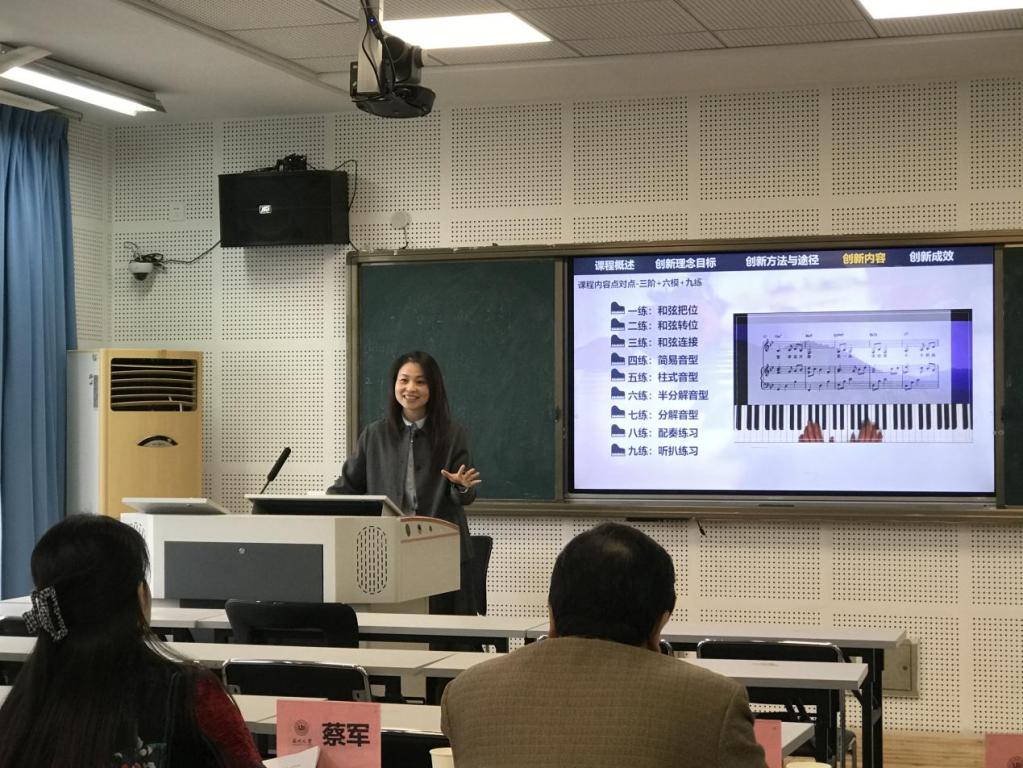 十四届艺术周暨国家级一流本科专业音乐学(师范)建设系列活动之第三届教师教学创新大赛院赛,“搭建交流平台”开展了教学竞赛交流研讨会,推动教学创新,促进教学质量;开展“明心”教学示范课,展示教师教学成果;邀请校督导组组长袁建国教授莅临学院指导教学工作,改变教师新观念,破解教学新瓶颈;全体教师共同学习“”基于OBE理念的教学设计与教学改革”专题讲座,不断促进教师综合素质、专业化水平和创新能力全面提升,打造高水平、结构化教师教学创新团队,持续推进学院一流本科专业的建设。