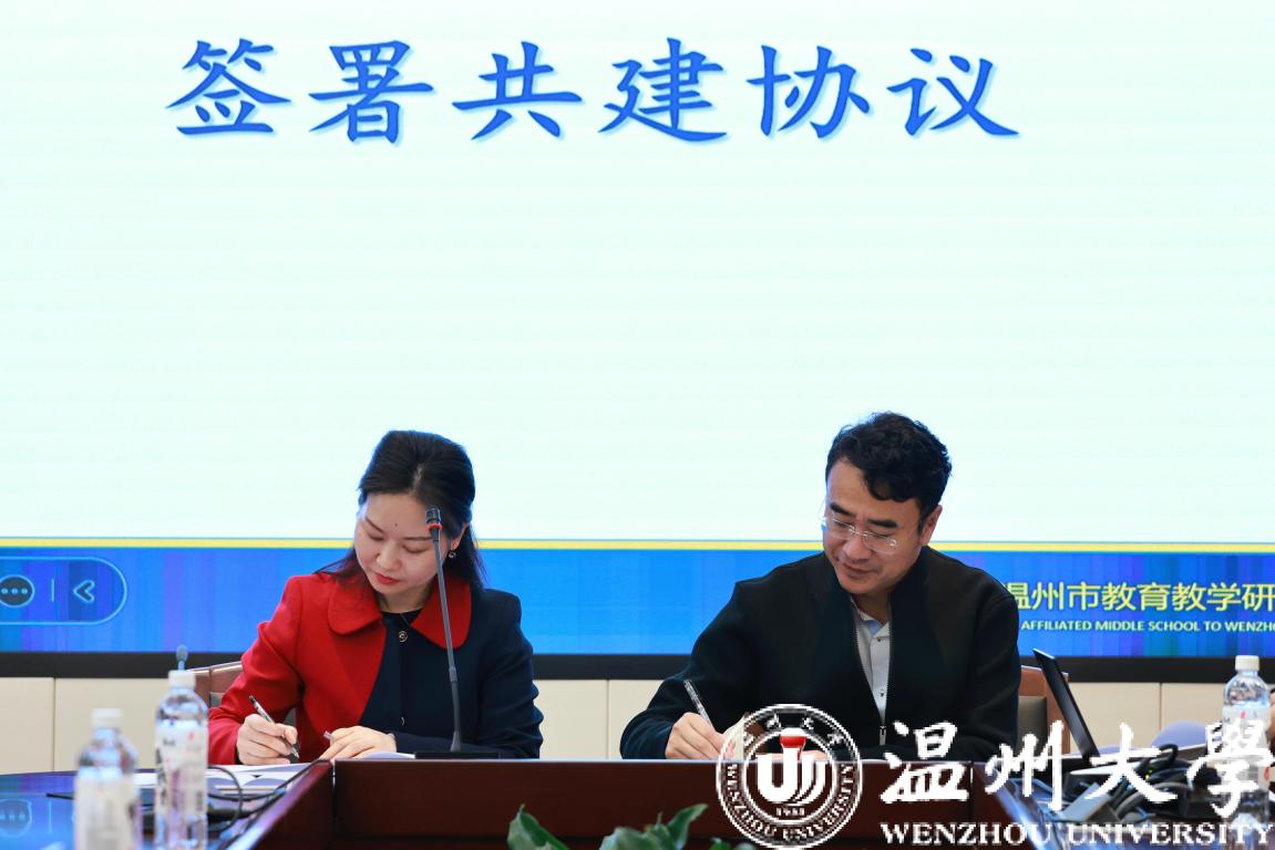 蔡军副院长与温州市第十二中王琦校长双方共同签署了教育实践基地合作协议并举行了揭牌仪式。