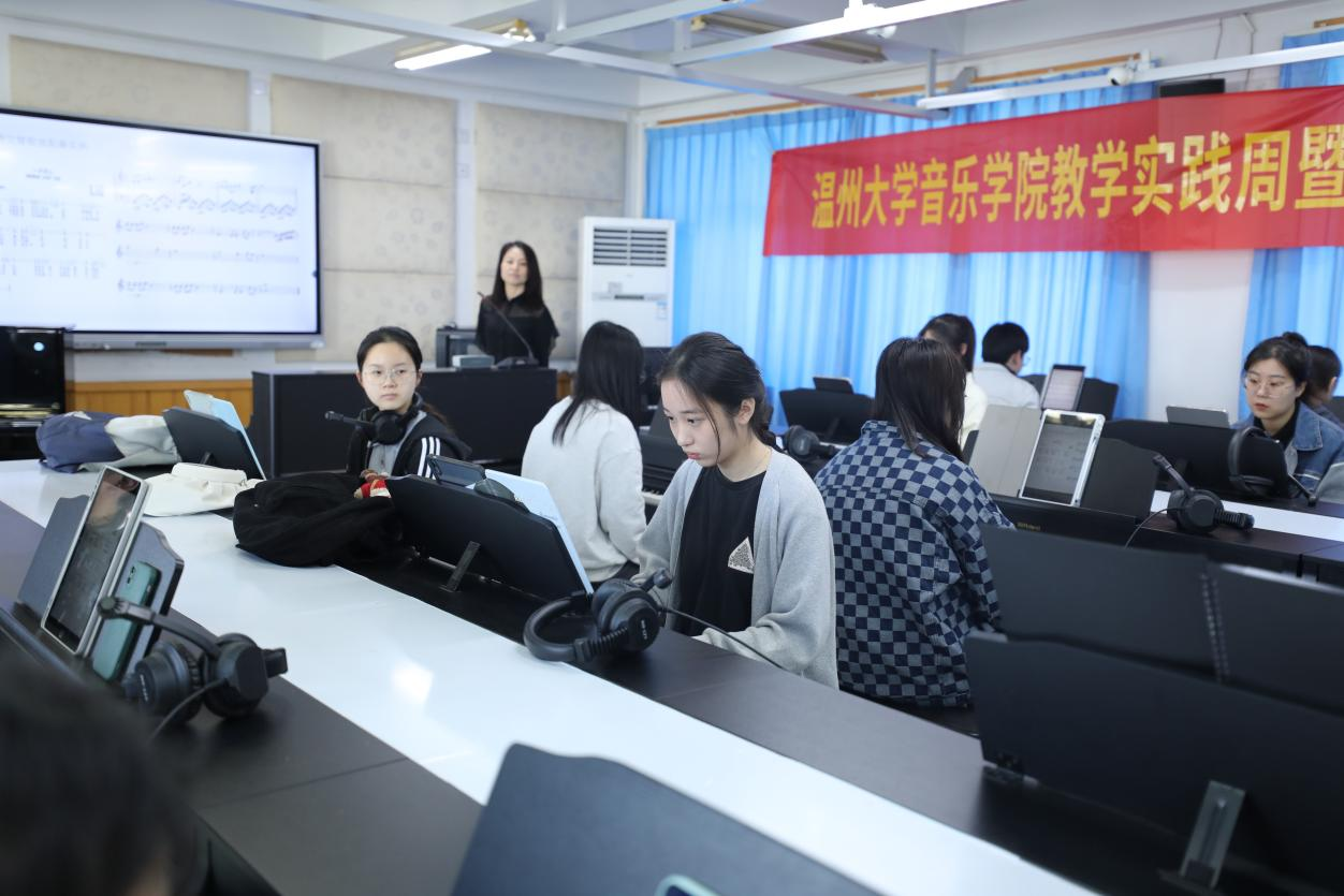 教学实践周暨国家级一流本科专业音乐学(师范)建设系列活动中的“明心”教学示范课之钢琴即兴伴奏课。