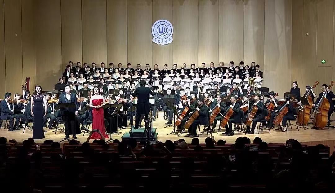 《未了情》是一部以“爱”为主题的歌剧。故事取材于古典名著《聊斋志异》,讲述的是钟馗带人来捉拿倩娘,人们跳起傩舞将她团团围住,使她无法摆脱,最终被钟馗收入囊中。而此时的云鹏急火攻心,大叫一声也命赴黄泉,随后二人的灵魂来到天堂,终于可以长相厮守的故事。作品运用了二重唱,三重唱,合唱,咏叹调等多种形式表现出歌剧特色和独特的艺术魅力。曲中运用了交唱的手法使男女声重唱、对唱与合唱团齐唱、合唱交织在一起,极大地渲染了歌剧情节中紧张不安的气氛,增强戏剧性,极具张力。这种手法不仅提升了写作难度,也增加了演出的难度,乐队与演唱之间的配合与衬托、声部间的主次控制都需要高强度的注意力与专业性才能够完成。三位老师情感充沛的演唱与叶熙熙老师精准把握的指挥,使这首融合了多元艺术形式、充满戏剧张力的作品得到了淋漓尽致的演绎。
