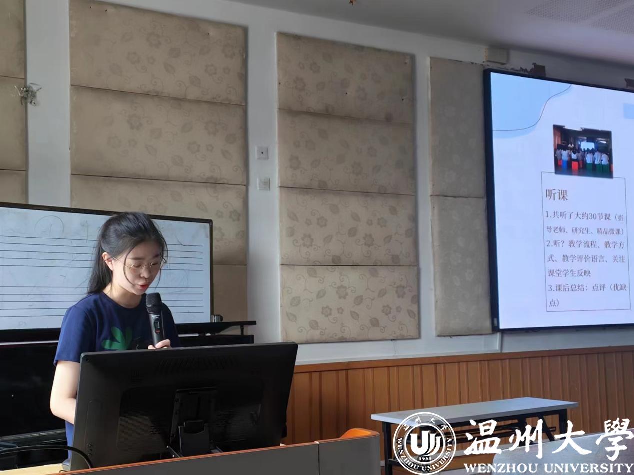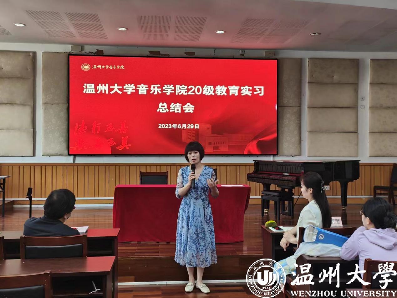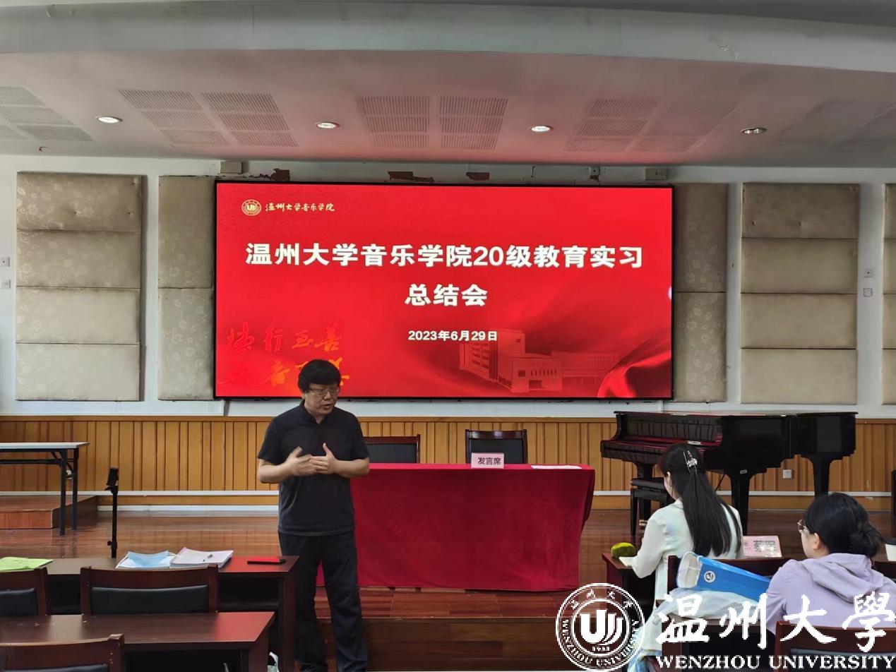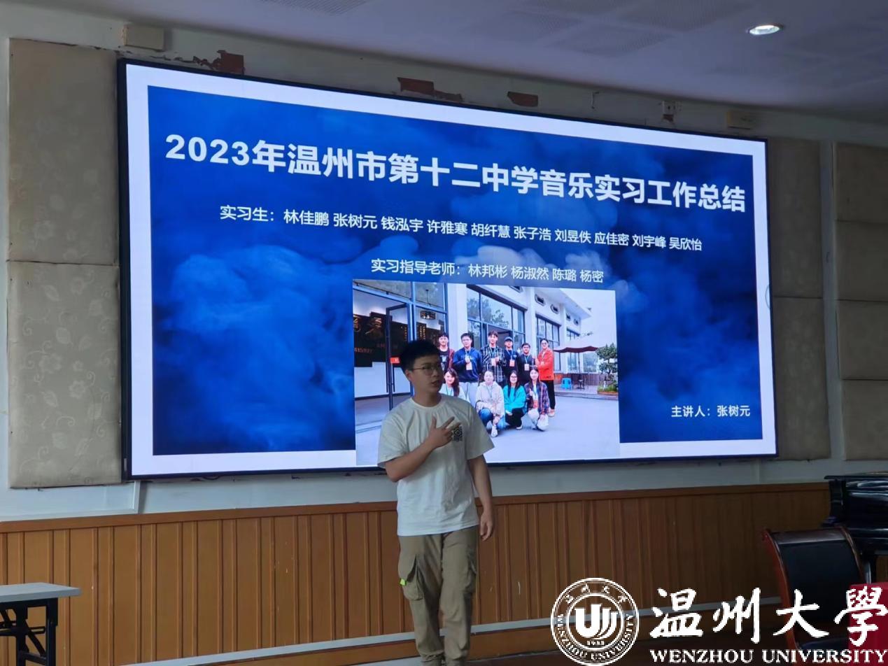 会议伊始,实习负责人李葳老师对本次20级音乐学(师范)学生实习工作进行了总结讲话,肯定实习学生们的优异表现,并对学生们的将来寄予了厚望。随后,20音教班级周景宜同学作为温州市第二实验中学实习小组组长,谢多加同学作为温州市第二外国语学校实习小组组长,张树元同学作为温州市第十二中学学校实习小组组长,李文昊同学作为温州市第二中学(滨江校区)实习小组组长等,结合了音频、视频和PPT等,分别从实习学校的简介、教师团队、教学活动、班主任日常、个人感悟、工作内容、音乐课堂、实习收获等方面进行了精彩发言,他们不仅为大家展现了此次实习的成果,也是一次深刻全面的实习总结。