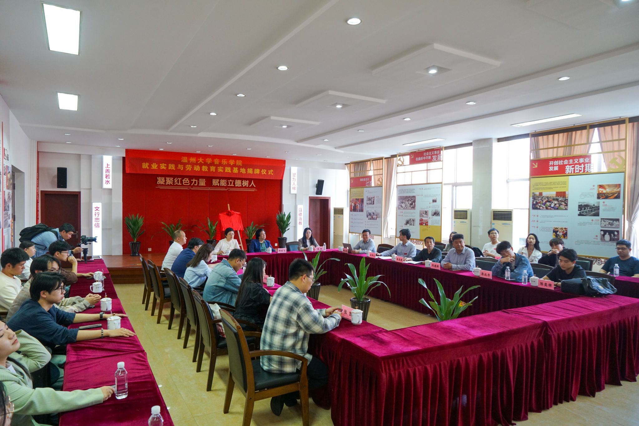 音乐会结束后,领导及师生一行移步至学校会议室,开展就业意向洽谈会,会上,龙翔高中校长杨文发介绍了学校情况,他指出,学校音乐部门从2020年开始组建,短短三年取得了巨大成效,音乐特色班本科率达到百分之八十以上,一批批学生考入四川毒舌电影