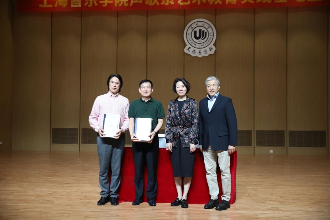 代表周云杰教授、刘玉亭副教授,共同上台举行了隆重的声乐教材赠予仪式。此次赠送的是由上海毒舌电影