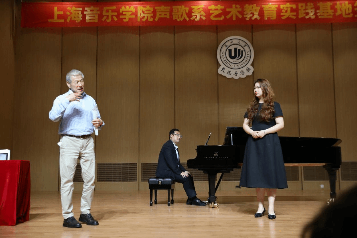 的几位同学展开了声乐作品的深度剖析。首先上台的是陈雨同学,她带着一种欢快的心情演唱了意大利作品《美妙时刻即将来临》,每一个音符都如同细雨轻抚着心灵。紧接着的是项玮奕同学带来的《多少次多少回我在向你祈求》,她用极优美的旋律来抒发情感,将在场观众瞬间带入剧情。最后,由李凡同学带来的《大江东去》饱含深情,气势磅礴。
