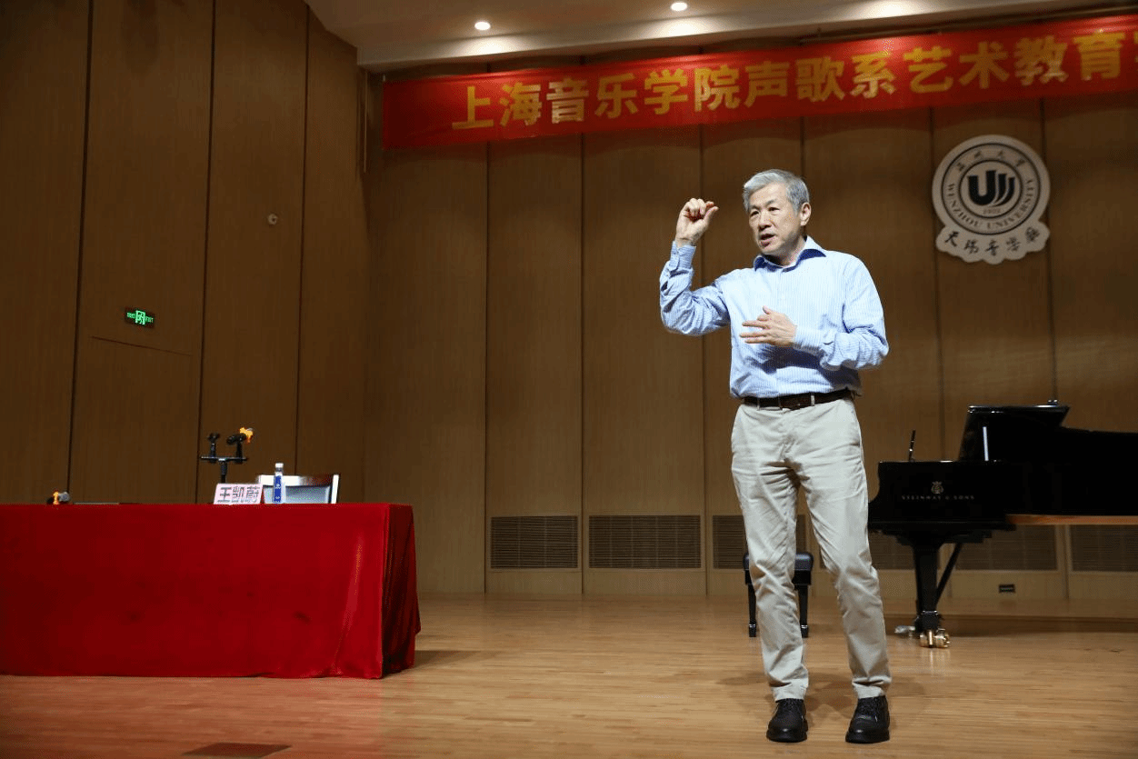 王凯蔚教授认真聆听每一位同学的演唱,并给予了修改意见,引导学生理解作品背景下深层的含义,以肢体语言的形式调动学生的积极性,并亲自示范演唱,每一个细节都处理的很到位,让学生们学会应如何更好的演绎声乐作品,提升自己的演唱水平。
