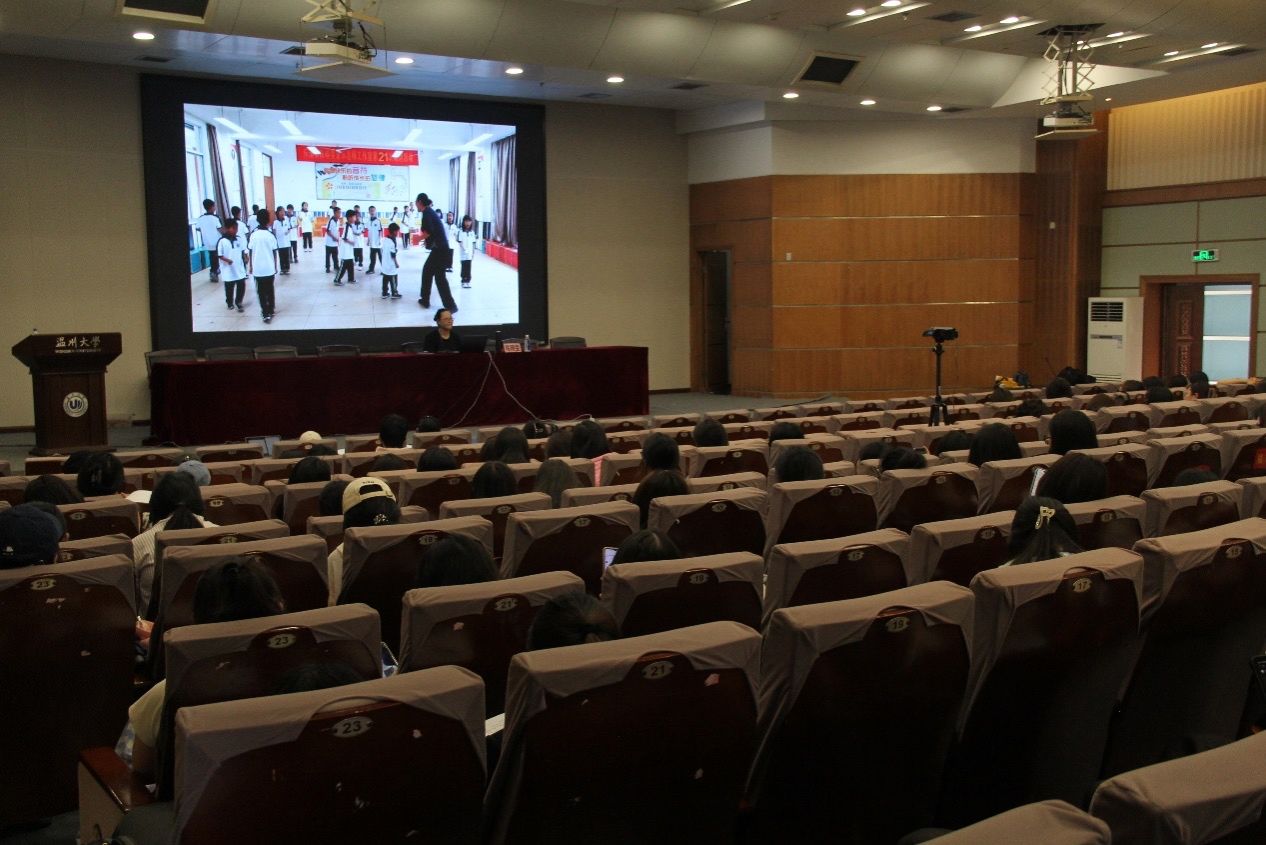 陈晓雯老师说:为师,勤勉也,无私奉献!陈晓雯老师演讲的热情感染到了台下每一位同学。她拿出自己与学生们的合唱视频分享给同学们。视频里的小学生们在台上载歌载舞,露出自在舒展的笑容。这时,陈晓雯老师的努力也得到了体现——即使半数是留守儿童,每一位孩子都在发光发热,孩子们的脸上有了欣喜、有了自信。陈老师还提出:氛围的力量是很强大的!学校现在每位学生至少会一件乐器,有的甚至能演奏好几件,而乐器、舞蹈的教学几乎都靠着孩子们互相学习,老带动新、大带动小。此外,孩子们还试着创作乐曲,班级经常开音乐会,自发编创集体舞……