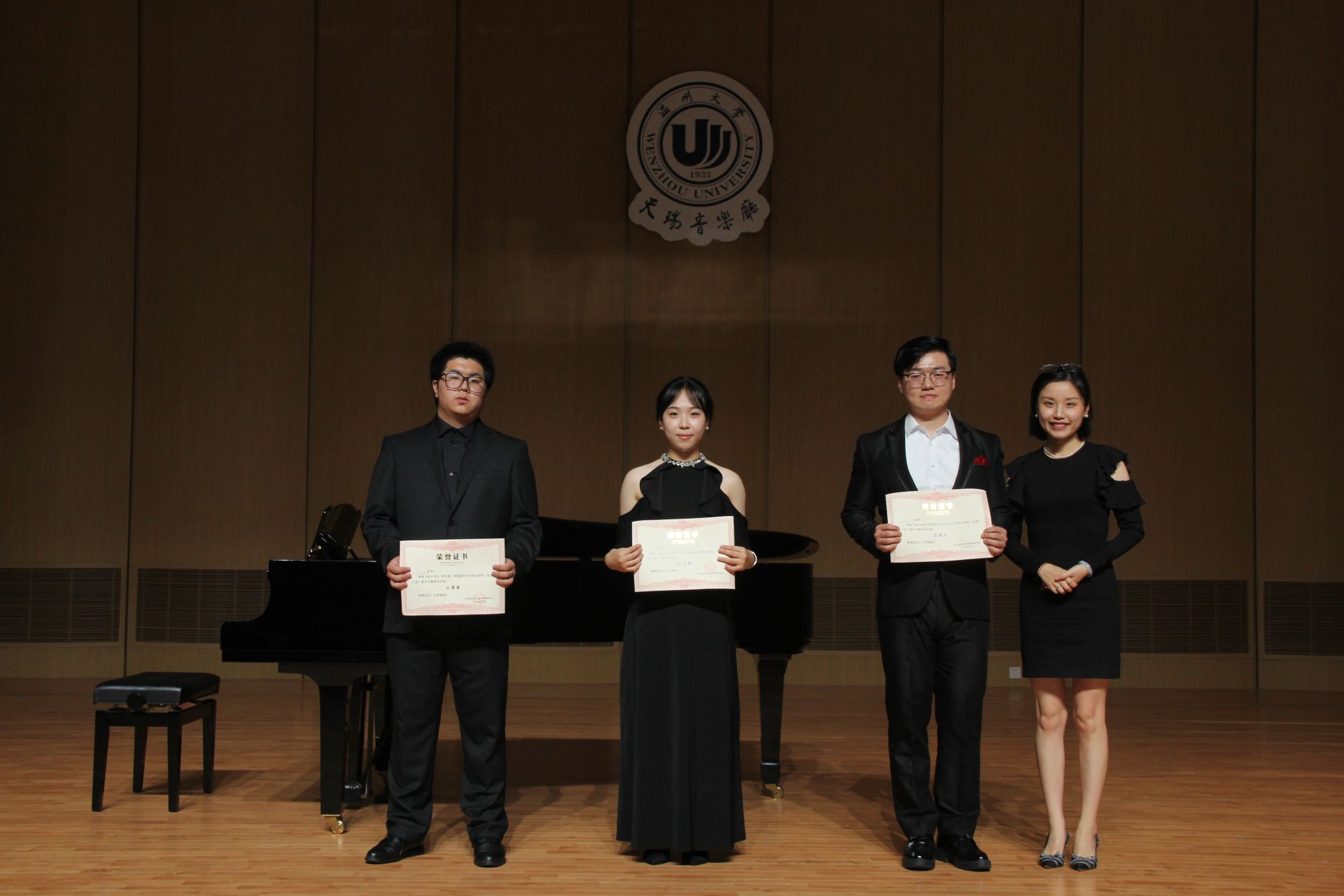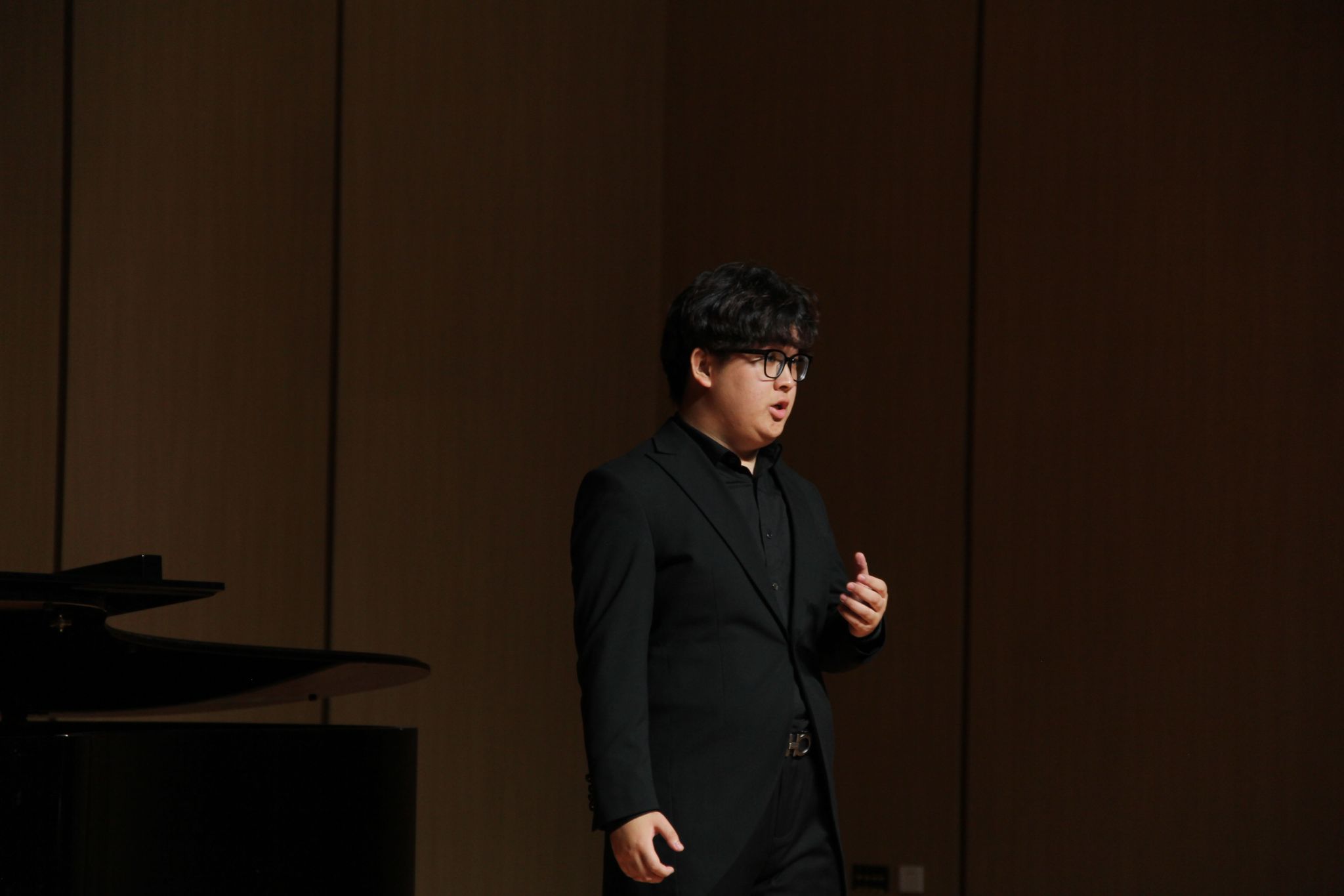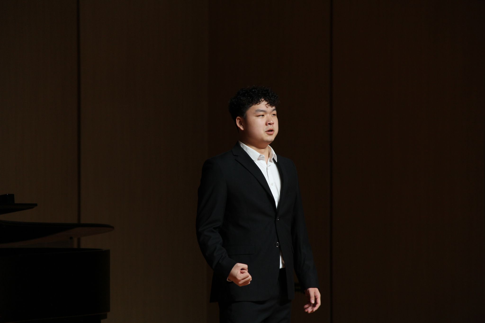 在这之后本科生与专升本组选手进行演唱。陈雨同学带来的《年轻姑娘应该懂得》歌声充满力量展现了年轻姑娘的坚定和勇敢。何润同学的《想亲娘》深情款款,他以真挚的情感和细腻的嗓音,将歌曲中的思念和牵挂表达得深入人心。康奕琳同学演唱的《念奴娇·赤壁怀古》让在场的观众无不为之动容。古小玉同学带来的《我去向何方》以其深情的演绎,展现了歌曲中的迷茫和追求。李咏静同学演唱的《幽兰操》以悠扬婉转的曲调和深情的演唱,展现了幽兰的高雅和坚韧。王聪慧同学带来的《锦瑟》将歌曲中的哀怨和无奈演绎得入木三分。雷森伟同学演唱的《故乡》则以其豪放的嗓音和深情的演绎,将歌曲中的思乡之情表达得淋漓尽致。金昌民同学演唱的《春花秋月何时了》歌声如同春水般柔和,又似秋月般明亮,表达了人生的短暂和无常。陈嘉慧同学演唱的《不答应也得答应》以其清澈透亮的嗓音,将歌曲中的情感表达得细腻而真挚,赢得了观众们的阵阵掌声。最后郭骏同学深情的演唱和精湛的技艺,成功演绎了《美妙的时刻即将来临》这首曲目。至此所有选手演唱完毕。