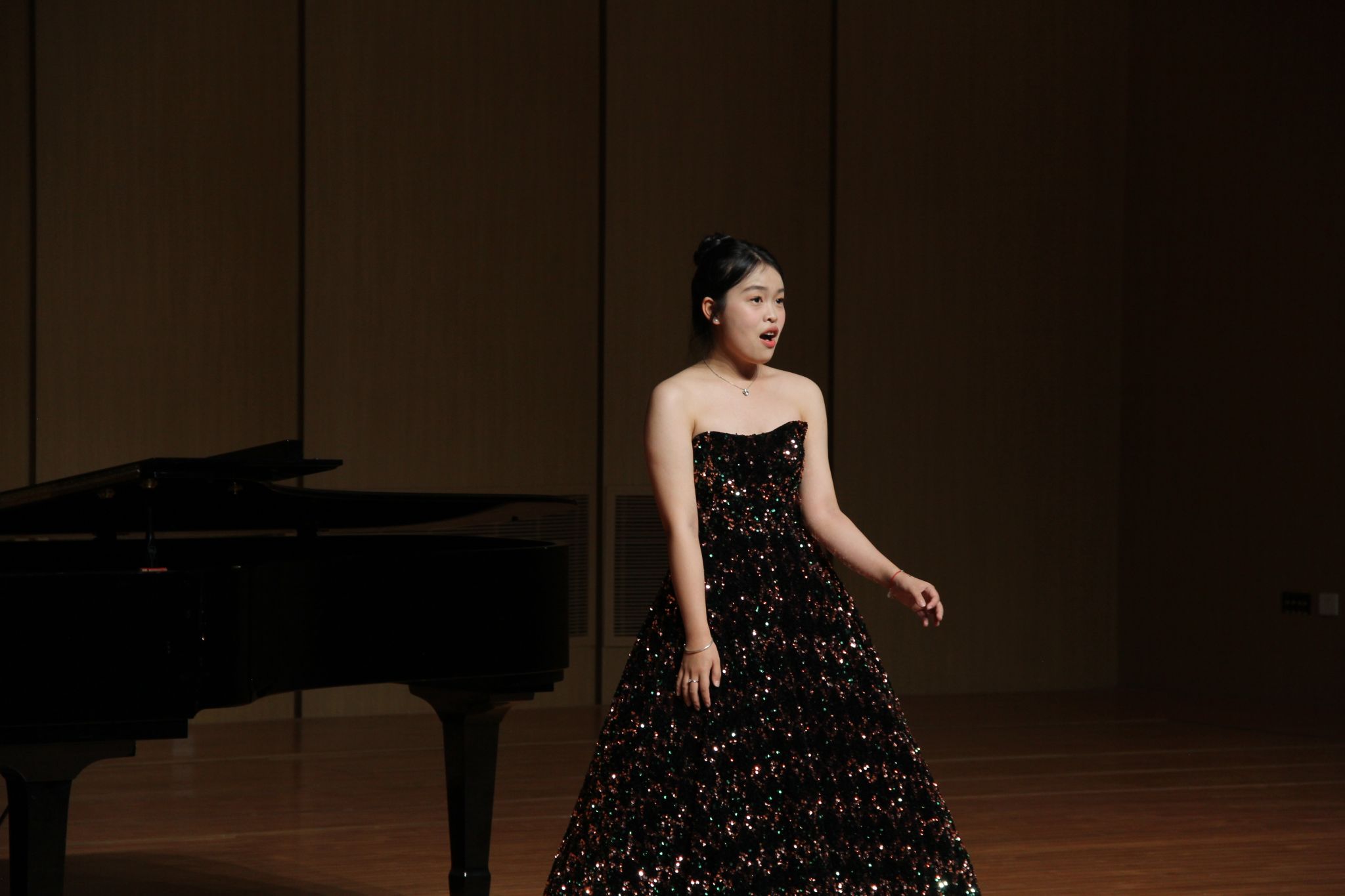 决赛当晚,现场气氛热烈而紧张。选手们纷纷登台献艺,用美妙的歌声诠释着音乐的无限可能。首先由研究生组郑芊芊同学带来的《我去向何方》揭开了比赛的序幕,席英杰同学演唱的《像那潇洒的帕里第》以其高亢激昂的嗓音将歌曲中的情感完美呈现。由王星凯同学带来的《寻常的故事》则以真挚的情感引发现场观众的共鸣。随后林方圆同学带来《O mio babbino caro》,韩昊宇同学演唱的《她心情平静》通过深情的演绎让观众感受声乐艺术无尽的魅力。