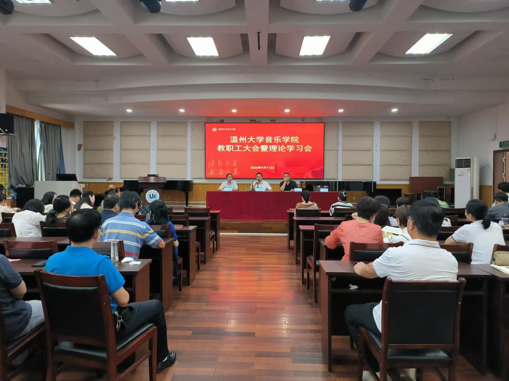 新学期全院教职工大会暨理论学习会在音乐楼201会议室召开,本次会议由院党委书记朱启鑫主持,学院全体教职工参加。