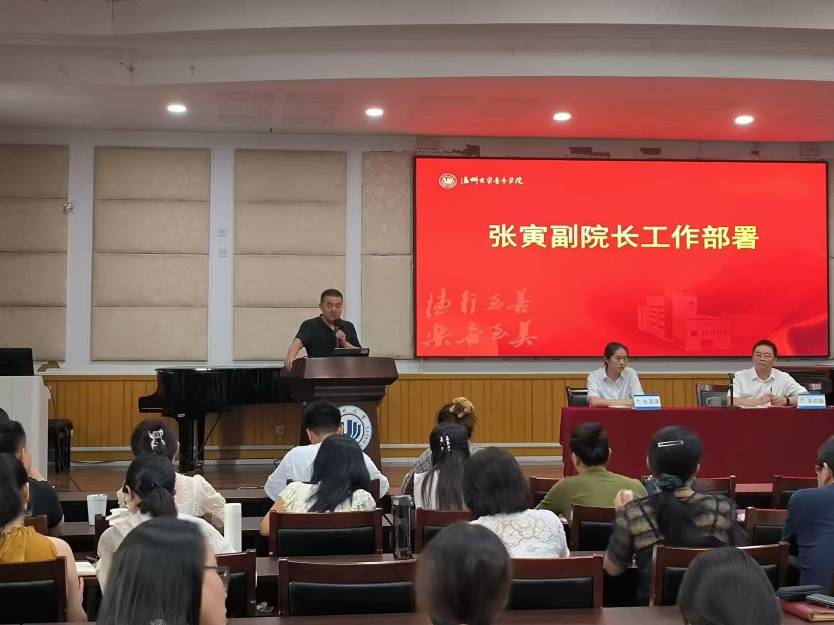 接着,张潇潇副院长部署新学期教学工作。张潇潇副院长就教学工作与资产管理做出详细说明,强调了本科毕业设计(论文)问题与学院国有资产乐器的保存与管理问题。为学院接下来的细节工作落实明晰了方向。