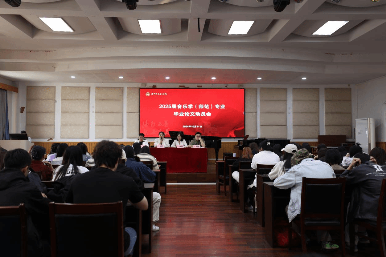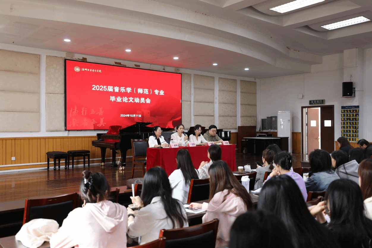 为顺利开展2025届音乐学(师范)专业毕业论文工作,我院于2024年10月11日上午在音乐楼201学术报告厅举行了动员大会。教学副院长张潇潇、教学科科长成晓、全体音乐学(师范)专业毕业班学生参加此次会议。