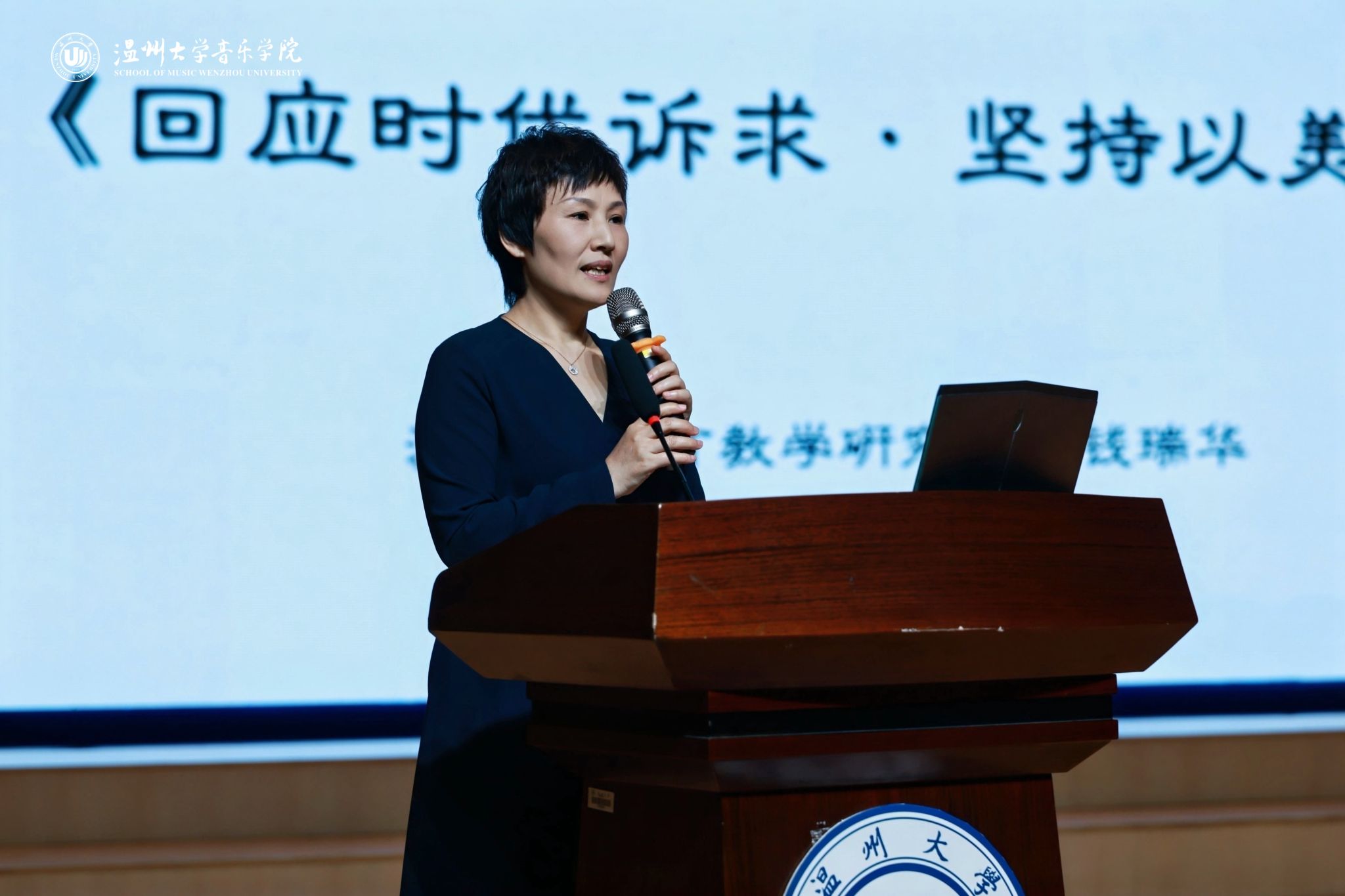 温州市教师教研院教研员,浙江省特级教师、正高级教师钱瑞华以《坚持以美育人・回应时代诉求》为主题,从政策导向与实践落地双重维度展开论述,并从何为美育之“美”,如何学会“审美”,如何通过美育活动培育终生“爱乐者”三个层面探索以美育人新路径。