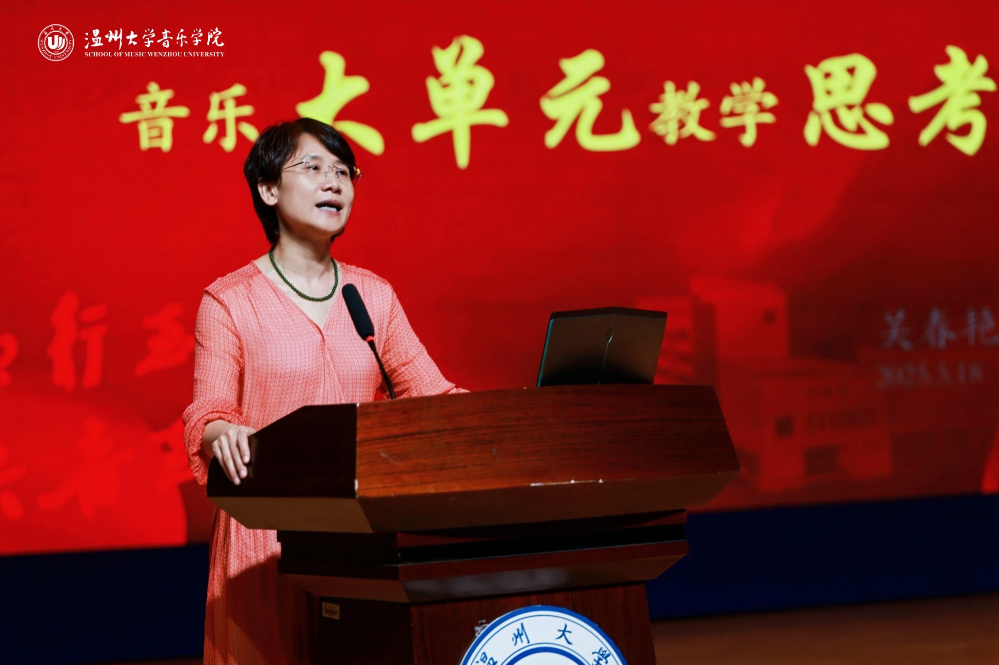 吴春艳副教授以《音乐大单元教学之思考》为题,从学术研究角度深入剖析了大单元教学的研究现状、特点和困境。她指出,大单元强调结构化,不仅是知识、技能的结构化,更是教学活动的结构化、问题的结构化。