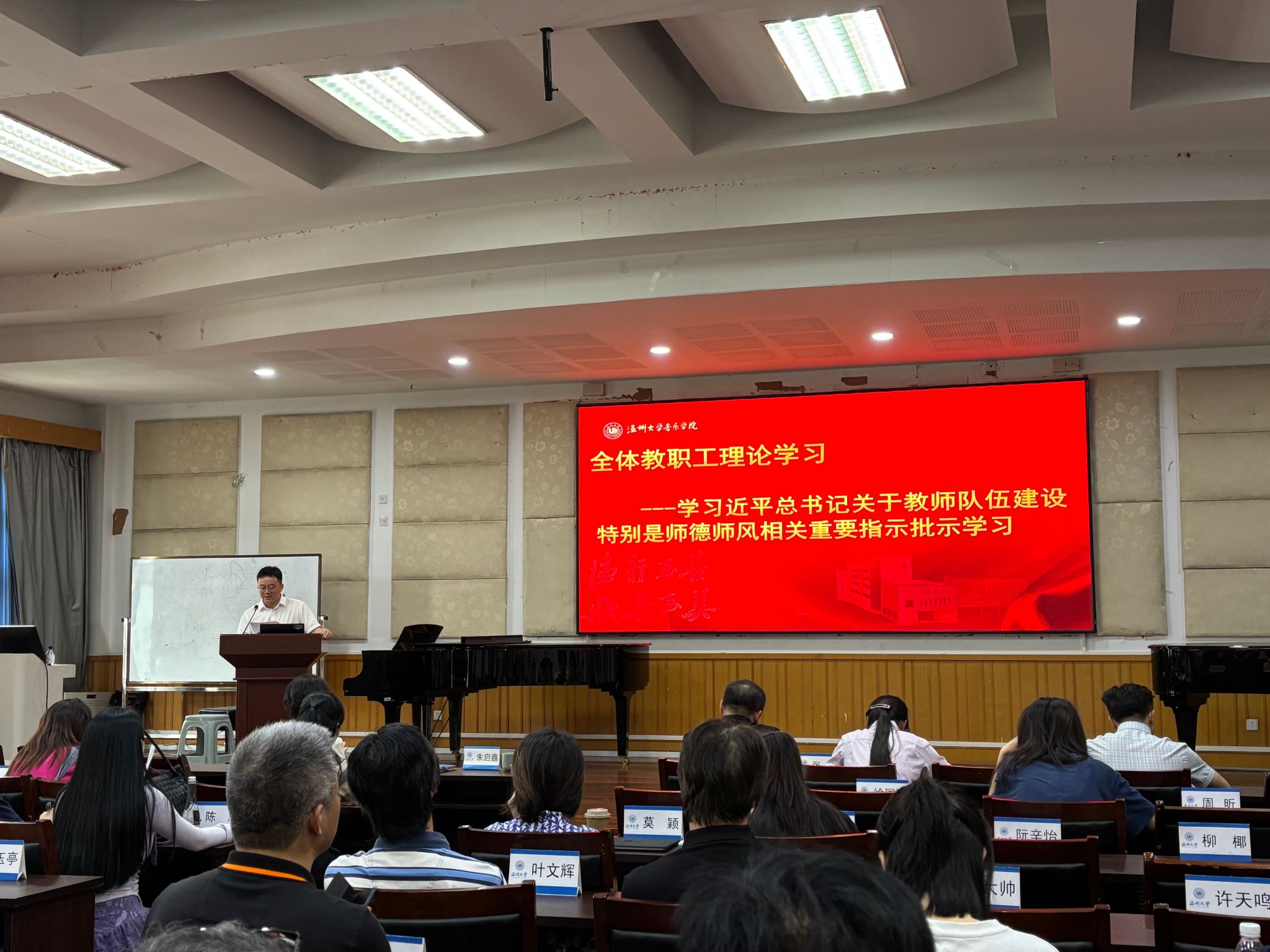 召开全体教职工大会暨政治理论学习会,会议由学院党委书记朱启鑫主持。