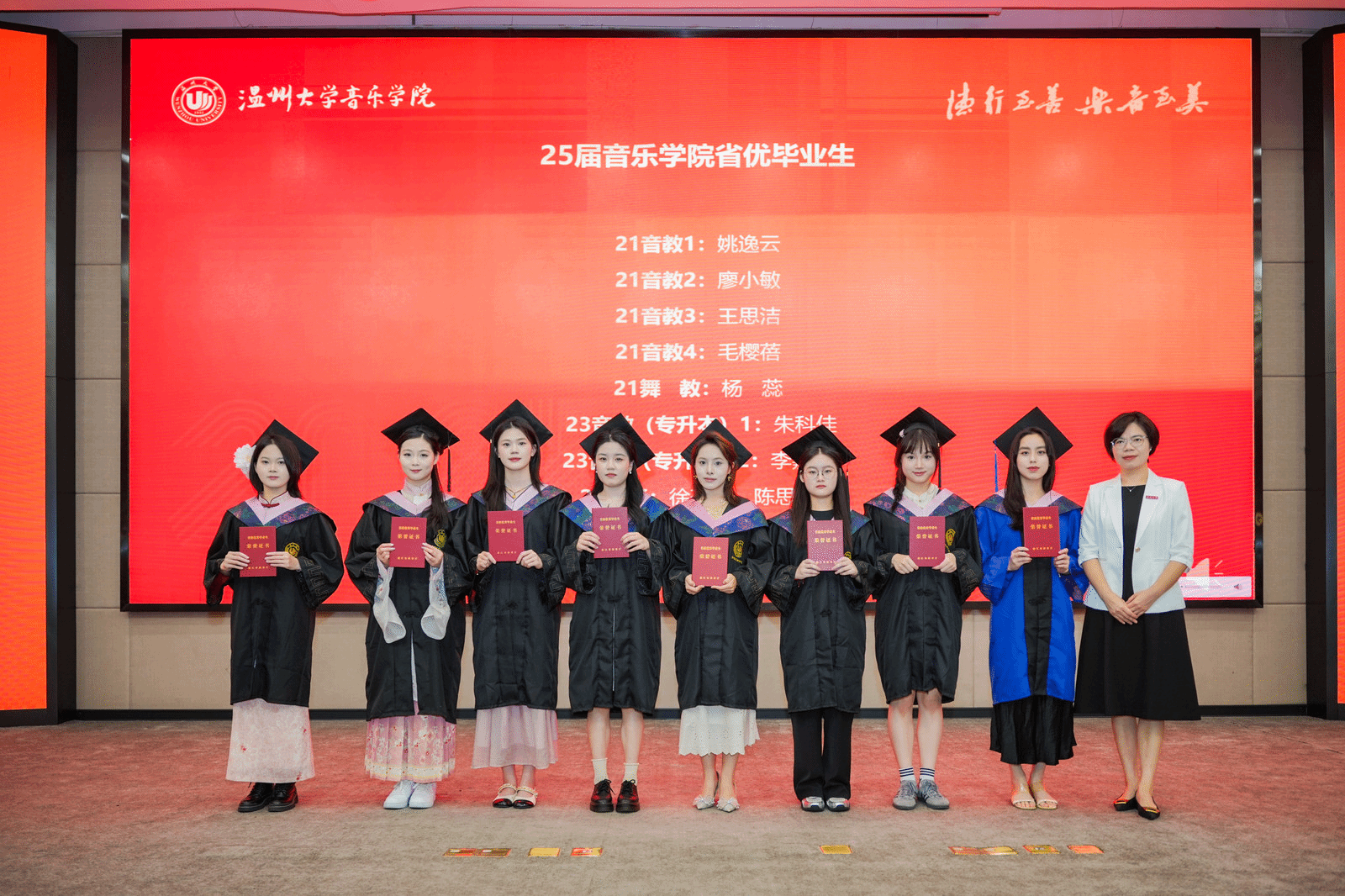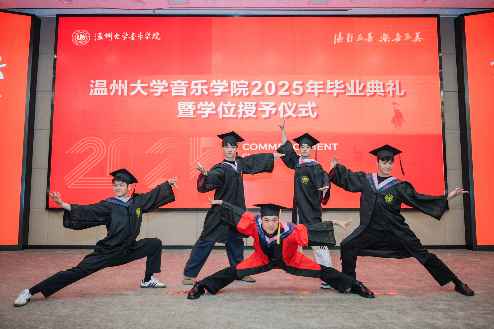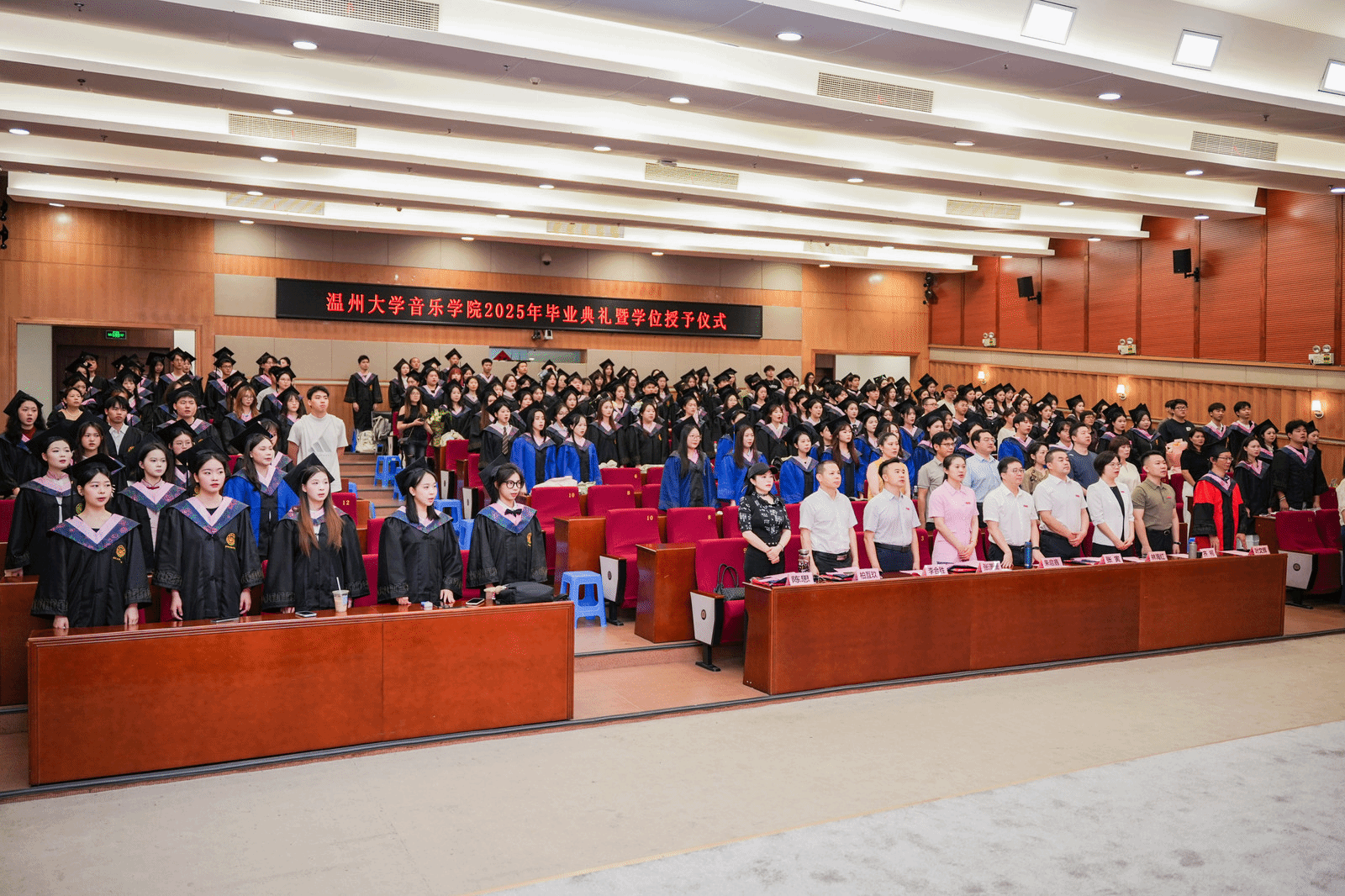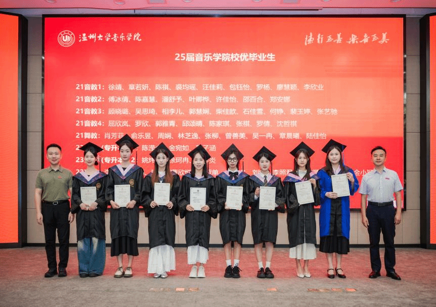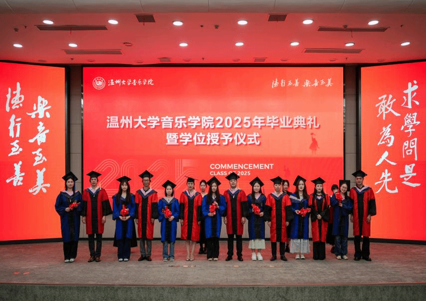 2025届毕业典礼圆满落幕。祝福2025届毕业生如五线谱上跃动的音符,在艺术征途上奏响璀璨乐章。愿他们以专业为帆,用热忱作桨,在舞台中央绽放光芒。此去山高水长,望各位毕业生永葆对音乐、舞蹈的赤子之心,让每一次演出都成为生命中动人的交响,前程似锦,大展宏图!
