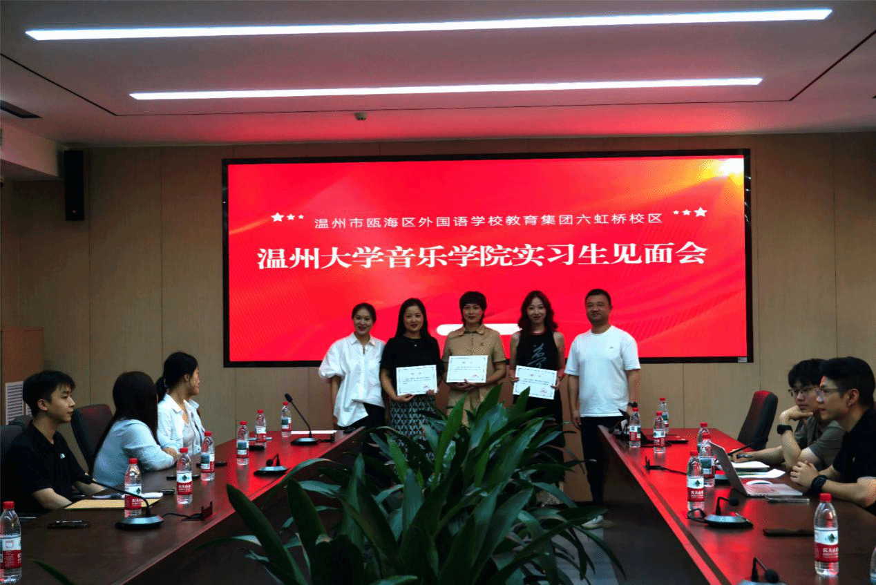 师生的到来表示热烈欢迎,并结合本校办学特色与教育理念,对即将开启实习生活的学生们寄予殷切期望。其中,瓯海区外国语学校校长叶会乐着重强调,教育实习是校地双方 “双向奔赴” 的育人过程,期待实习生们能充分发挥专业特长,为校园文化建设注入新鲜活力;瓯海区梧田第一中学副校长朱炳旭详细介绍了学校的发展概况与教学特色,寄语实习生们在实践中夯实专业知识、提升沟通协作能力,快速适应教学岗位需求;温州市第二实验中学副校长陈珊景深入阐释了学校 “润泽教育,让每位师生成为最好的自己” 的办学理念,期待实习生们的青春活力能与学校的蓬勃朝气碰撞出 “绚丽火花”,共同推动校园艺术教育发展;温州市南浦实验中学副校长刘荃则介绍了学校一体化办学模式,并提及 “快乐午间” 等特色音乐活动,为实习生们勾勒出丰富的实习实践场景。总体而言,四所实习点均为实习生们搭建了优质、多元的实践平台,为后续实习工作的开展奠定了坚实基础。