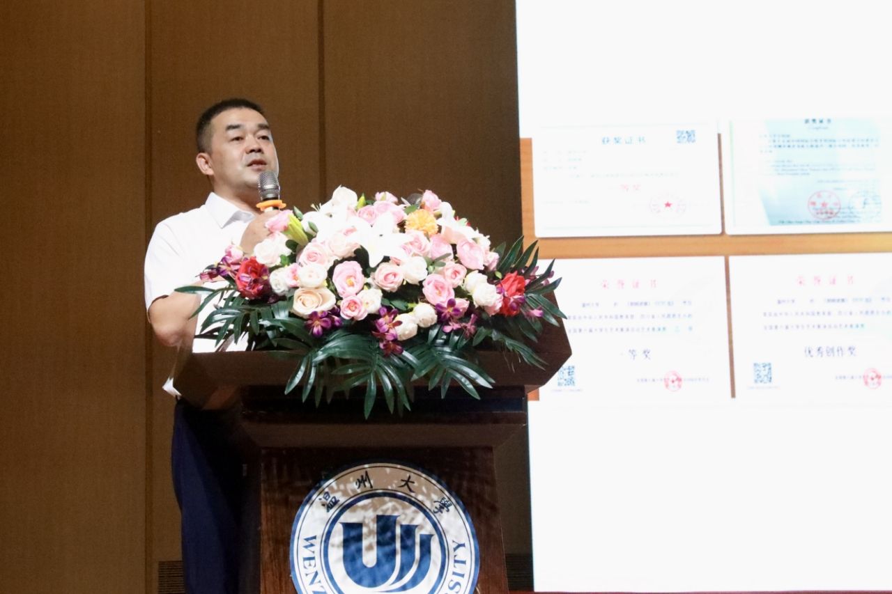 老生代表、2023级音乐学(师范)3班吴杰瑾同学分享了自己从学生会干事到部长,从紧张到从容的成长历程。她结合自己今年参加浙江省高校思政微课大赛荣获学生组特等奖(全省仅10项,实现我校该项赛事学生组的历史性突破)的经历,鼓励学弟学妹勇于踏出舒适圈,坚持自己的航向,在纷繁复杂的大学阶段依然保持自己的节奏与初心。