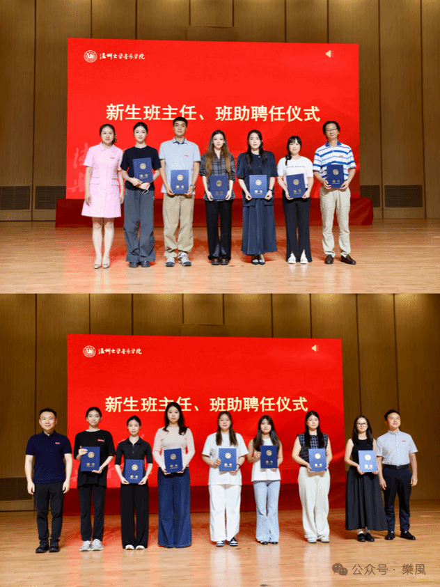 会议还举行了新生班主任和班主任助理聘任仪式。张潇潇副院长为新生班主任颁发聘书,学院党委委员李合胜老师和学术副院长齐柯老师为班主任助理颁发聘书。