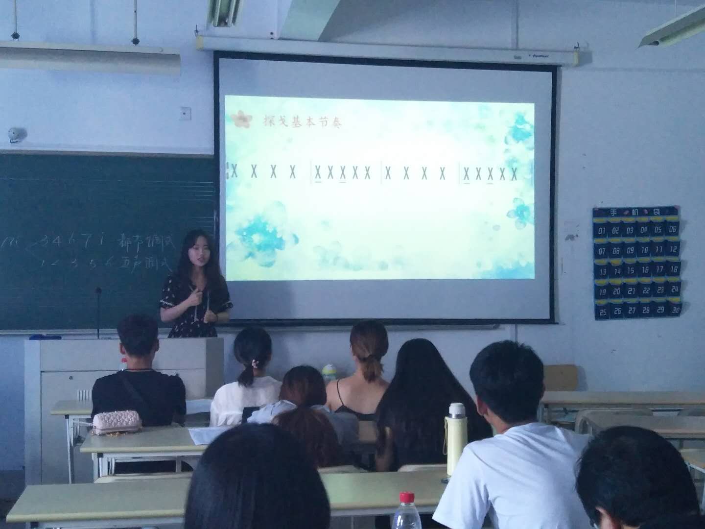 讲话结束后,在外语楼409教室进行 15级音乐学(师范)师范生技能单项奖比赛暨实习优秀生评比及暑期师范生技能集训选拔比赛。本次比赛进行模拟上课和自弹自唱两个项目,共有三十名参赛者。参赛者按照抽签顺序上台分别进行十分钟模拟上课和三分钟自弹自唱。模拟上课时参赛者们表现得体,内容引人入胜,台下学生反响热烈;演奏曲调和谐,歌声余音绕梁,各自弹唱都有其自身的特色。