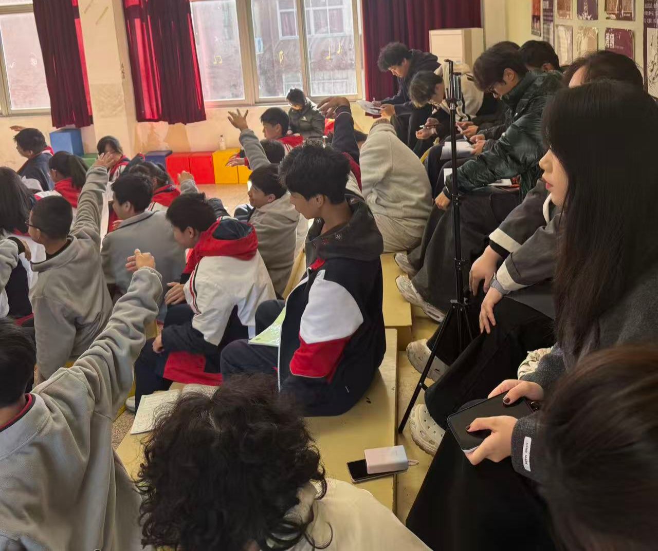 11月12与20日,25级音乐学4班全体同学在陈悦老师的带领下,赴梧田一中开展为期两天的见习活动。此次见习紧扣“新课标下初中音乐课堂实践”核心主题,通过理论讲座、课堂观摩、教师访谈与见习班会等多元形式,在理论与实践的碰撞中深化对初中音乐教学更鲜活、深刻的认知。见习期间,我们走进李茜、陈小莲两位资深教师及李锐峰、周湘燕、连翊佳等实习老师的课堂,感受不同教学风格的独特魅力。