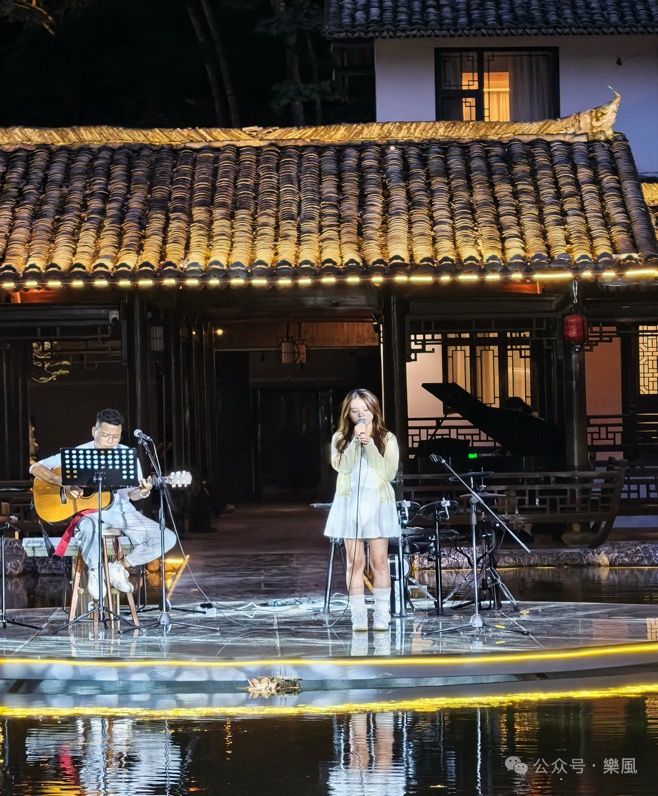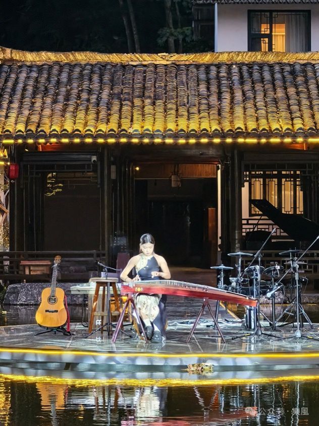 夜幕降临,楠溪若舍的露天舞台上,《我和我的祖国》的激昂旋律拉开序幕,《青花瓷》《年轮》等曲目轮番上演。传统民乐与现代音乐在此交融,从山水亭台到咖啡馆庭院,悠扬乐声与乡村风貌相得益彰。游客们驻足聆听,在音乐中感受乡村新气象。