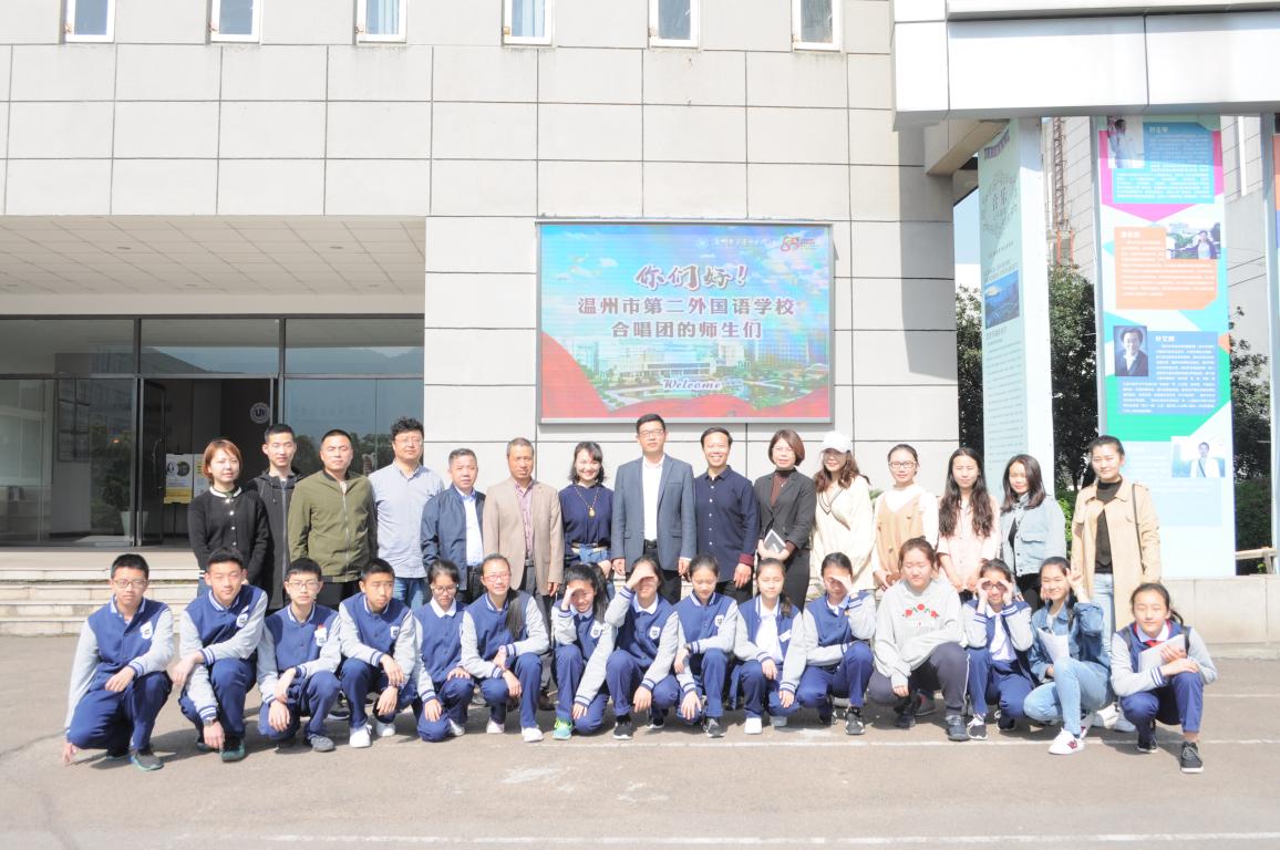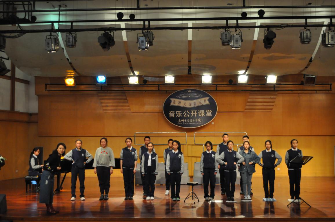 2018年4月9日上午9:00温州市第二外国语学校的陈潇潇老师及其合唱团来我院进行舞台实践交流———《“再别康桥”的新时代演绎》