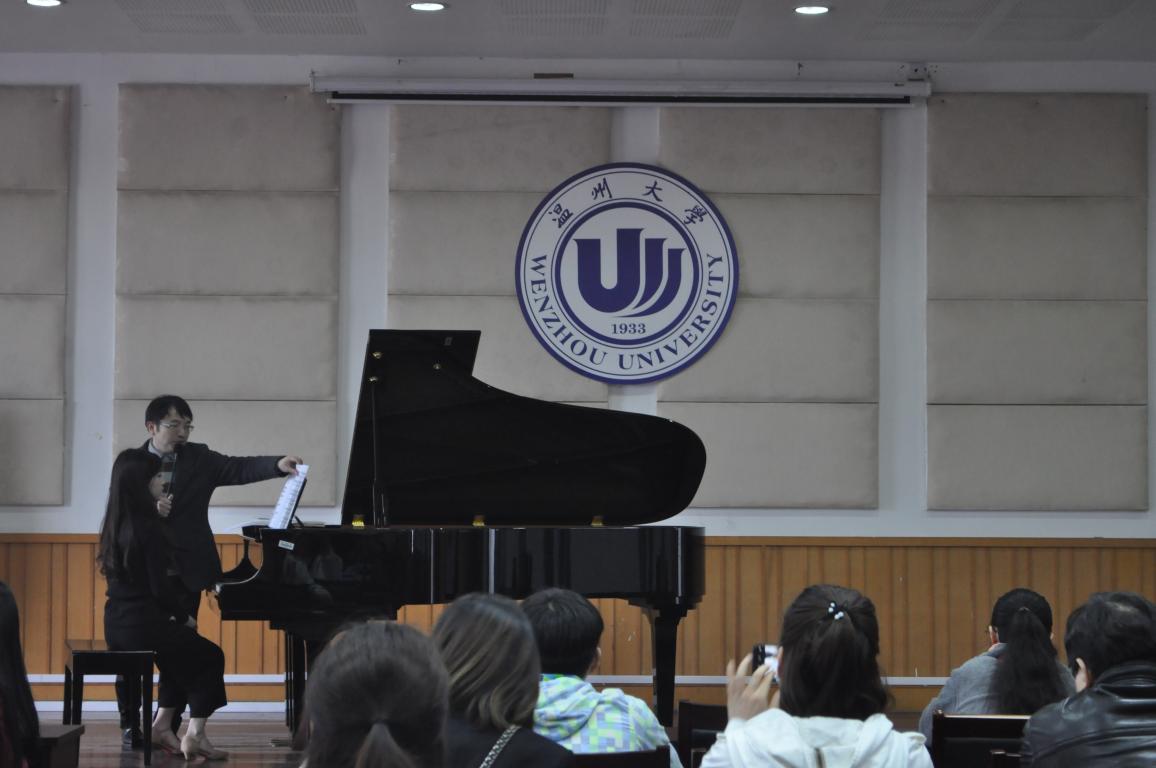 音乐学系学生吕心桔同学与丁馨香同学分别演奏了莫扎特《奏鸣曲》(K331)第一乐章和拉斐尔的《水之嬉戏》。周挺大师以简洁明了的语言、准确到位的剖析对两首作品与两位同学的演奏分别从左右手的演奏,整体的强弱以及和声甚至一些细小的和弦所表达的情感方面对两名同学的演奏一一作了详尽讲解的与指导。并且模拟提琴的演奏方式对低音进行分析,在对吕心桔同学的授课过程中,他指出吕心桔同学比较注重右手的旋律表达,可是好听的旋律需要靠左手的支撑。在对丁馨香同学的授课过程中,他强调了耳朵的重要性,要求所有的音交织在一起,自己技巧方面的手指的柔顺,不能让任何声音漏掉,在近两个小时的授课过程中,在座的广大师生始终被周挺大师严谨治学的专业态度与轻松幽默的授课方式与一丝不苟的治学态度所折服。