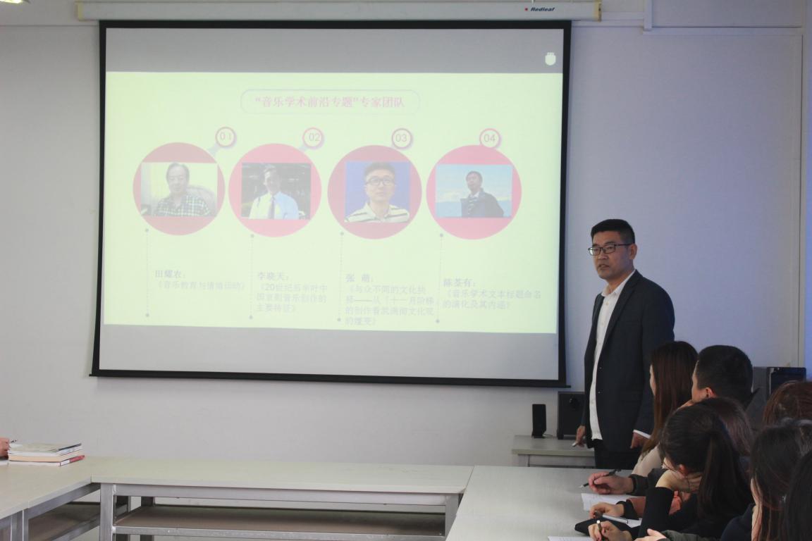 2018年3月20日下午,我院院长赵玉卿教授在音乐楼406举办《音乐学术前沿专题缘起、学科内涵及研究》专题讲座。讲座由毒舌电影