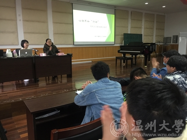 今天下午,学院邀请了温州市籀园小学的音乐高级教师张辉炜老师开展了《心动不如“行动”---浅谈小学音乐教学设计》师范生教学技能培训系列讲座,由王秀敏老师主持,教学科负责人、相关工作人员以及全院学生倾听了本次讲座。