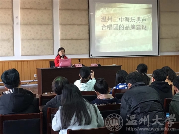 昨天下午,学院邀请了温州二中的孙茴老师开展了《合唱团的建设和训练》师范生教学技能培训系列讲座,由王秀敏老师主持,教学科负责人、相关工作人员以及全院学生倾听了本次讲座。