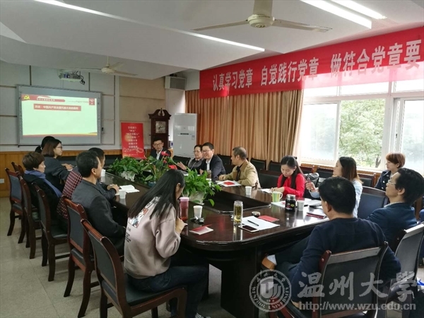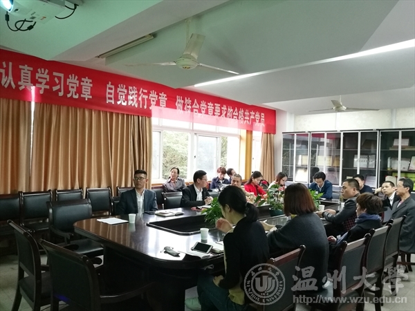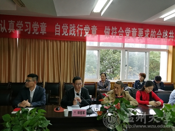 2017年11月15日下午,我院在音乐楼207召开本学期第三次党日活动会议,邀请了校党委组织部部长郑信军做《党的十九大“党章修正案”精神要领解读》的报告,学院党总支书记方建敏主持会议,全院党员参加学习。